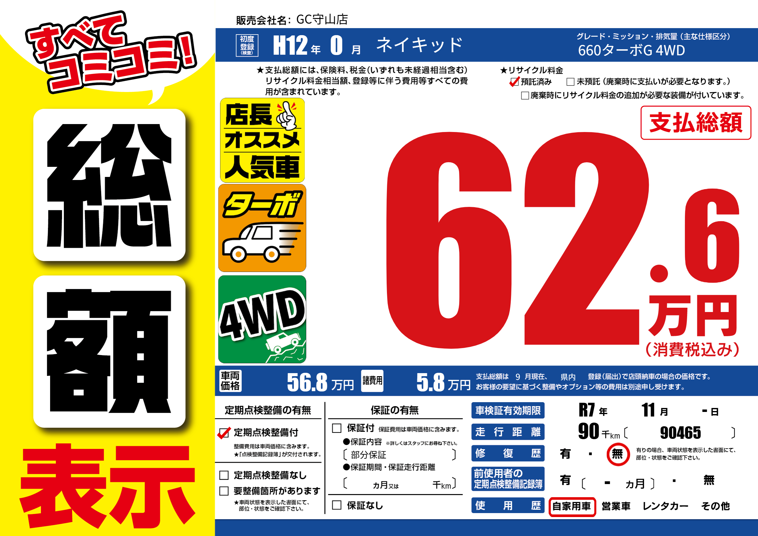 車検制限 R7年 11月 -日