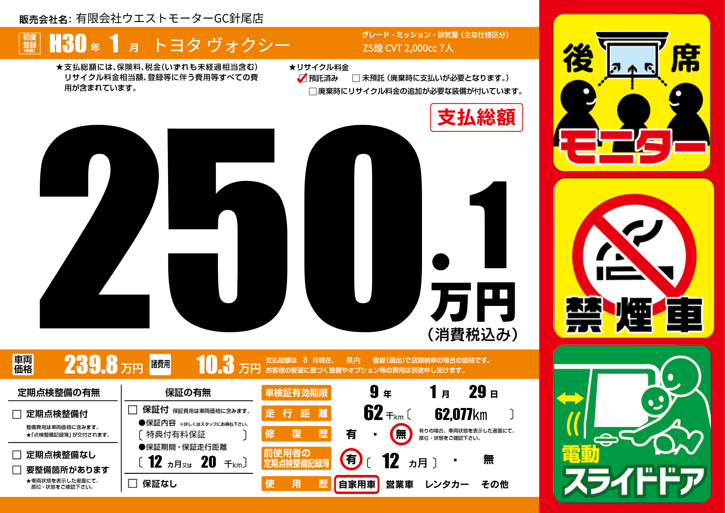なし | 車検制限 | 9年1月29月 |
