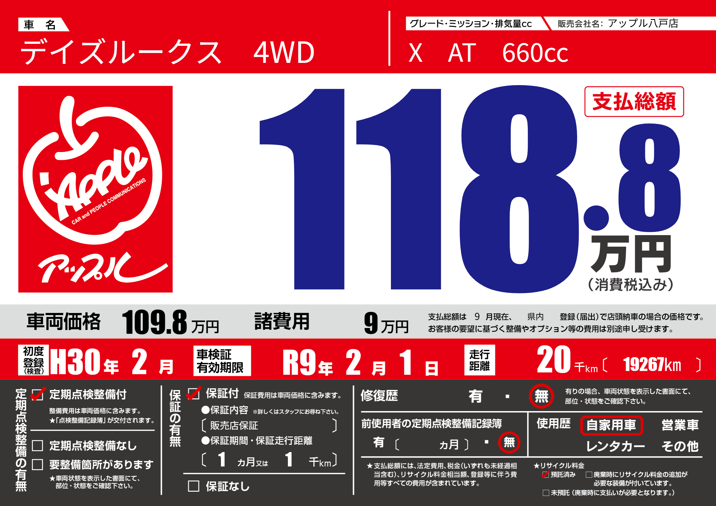 | 定期点検整備 | 定期点検整備あり | ||