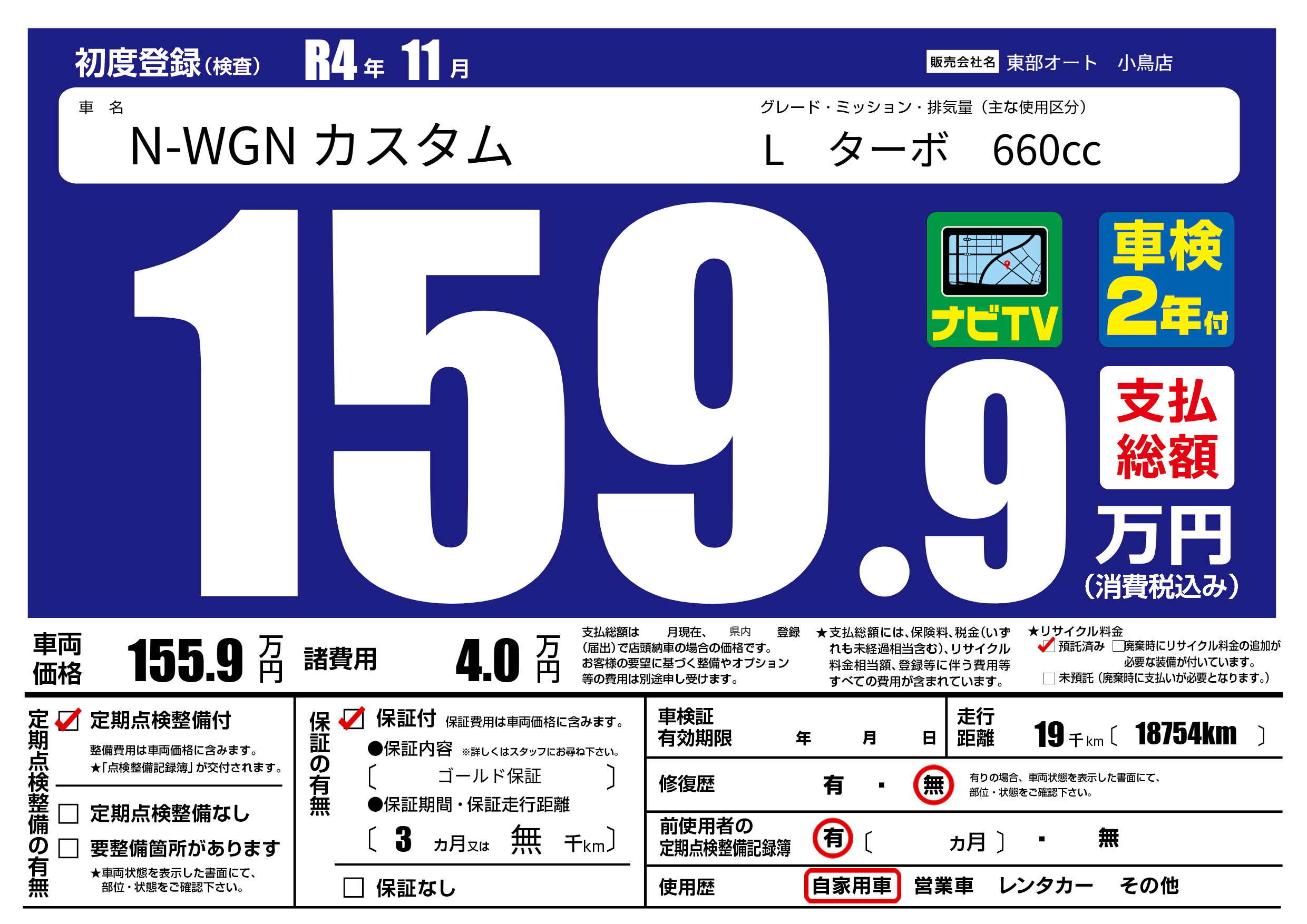 | 車名 | N-WGN カスタム | グレード ミッション 排気量 |
