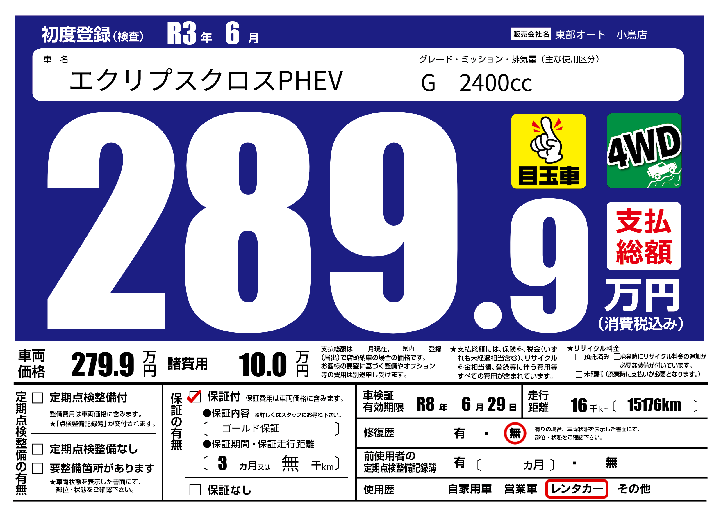 保証付き 保証内容( ゴールド保証) 3ヶ月または(無)千kmまで |