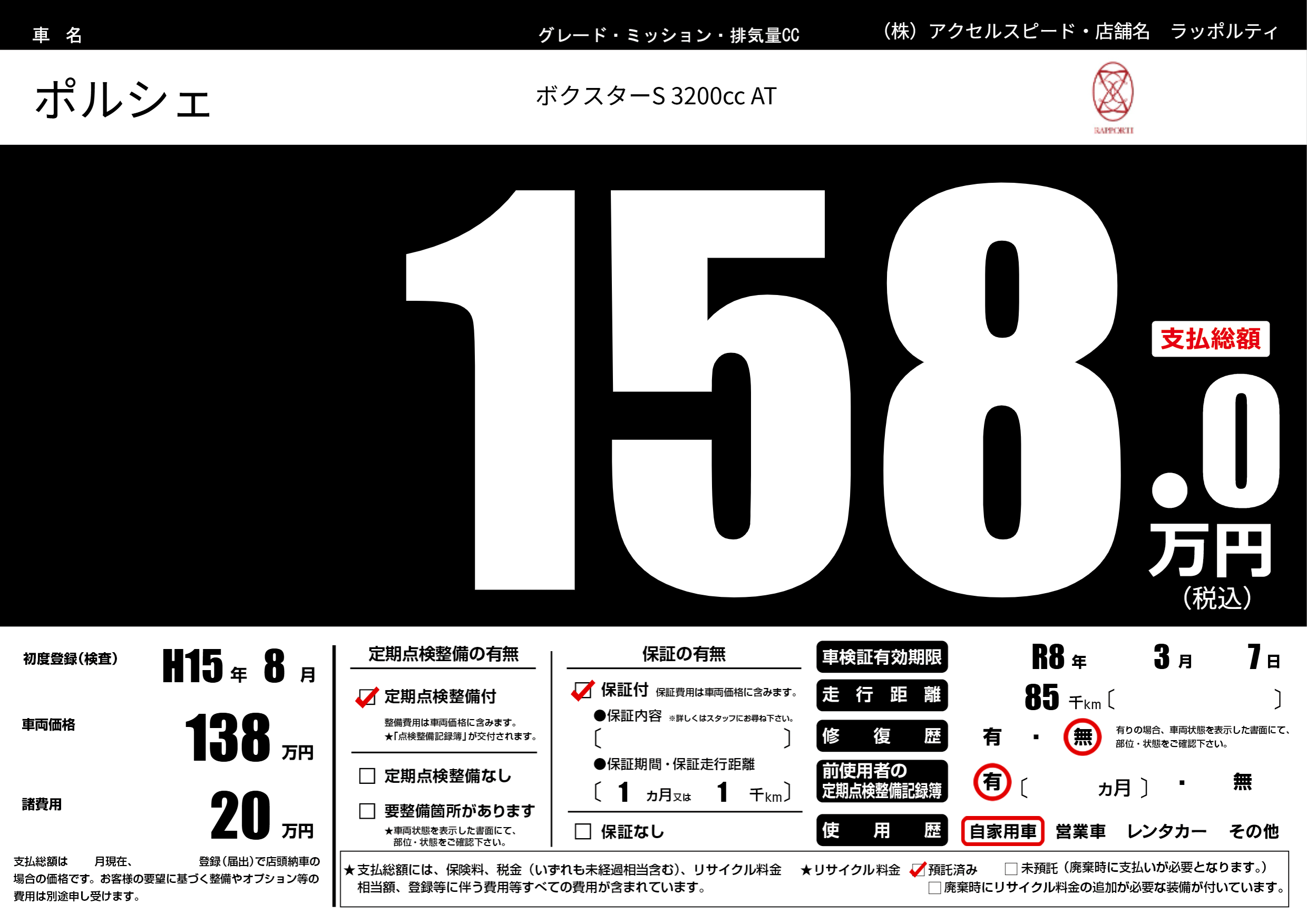 なし | 車検制限 | R8年3月7月 |