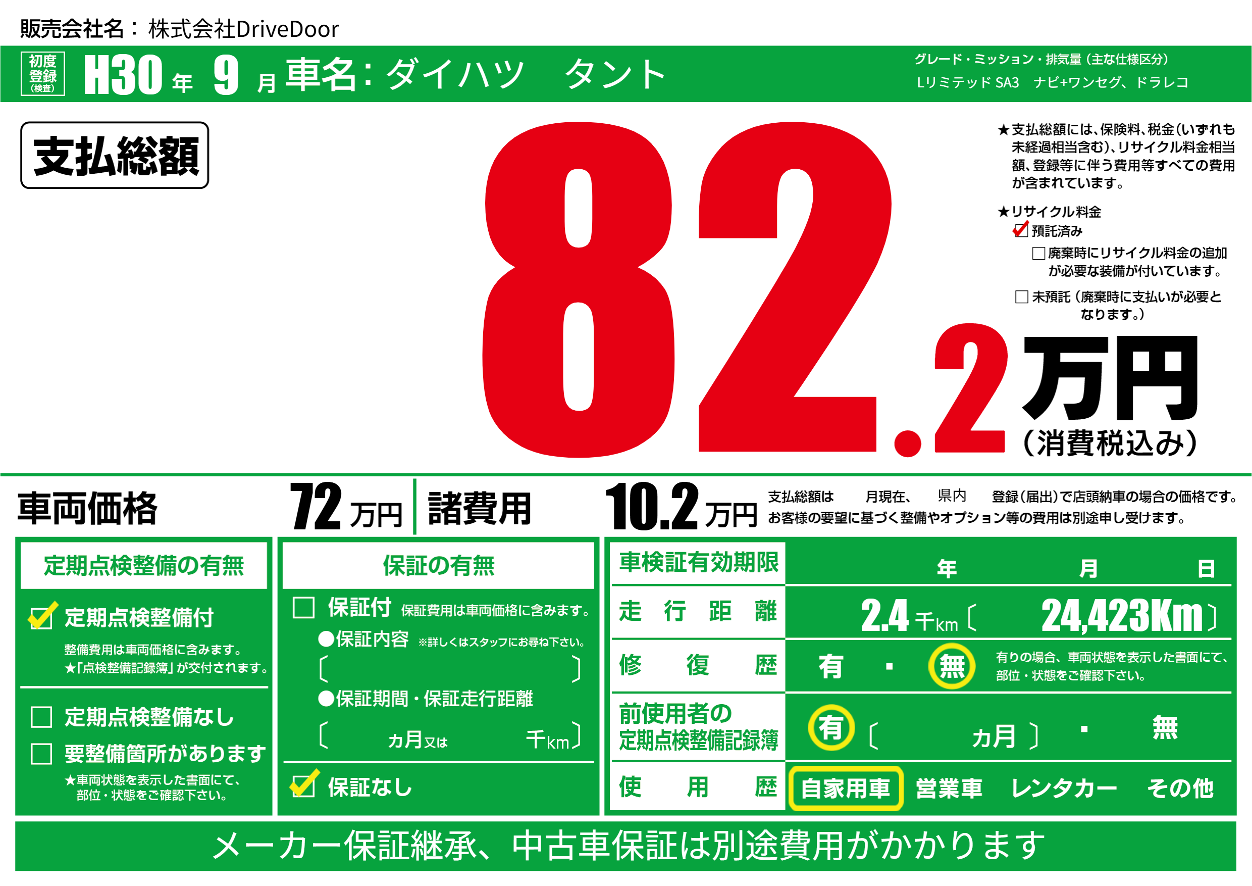 | 定期点検整備 | 定期点検整備あり | ||