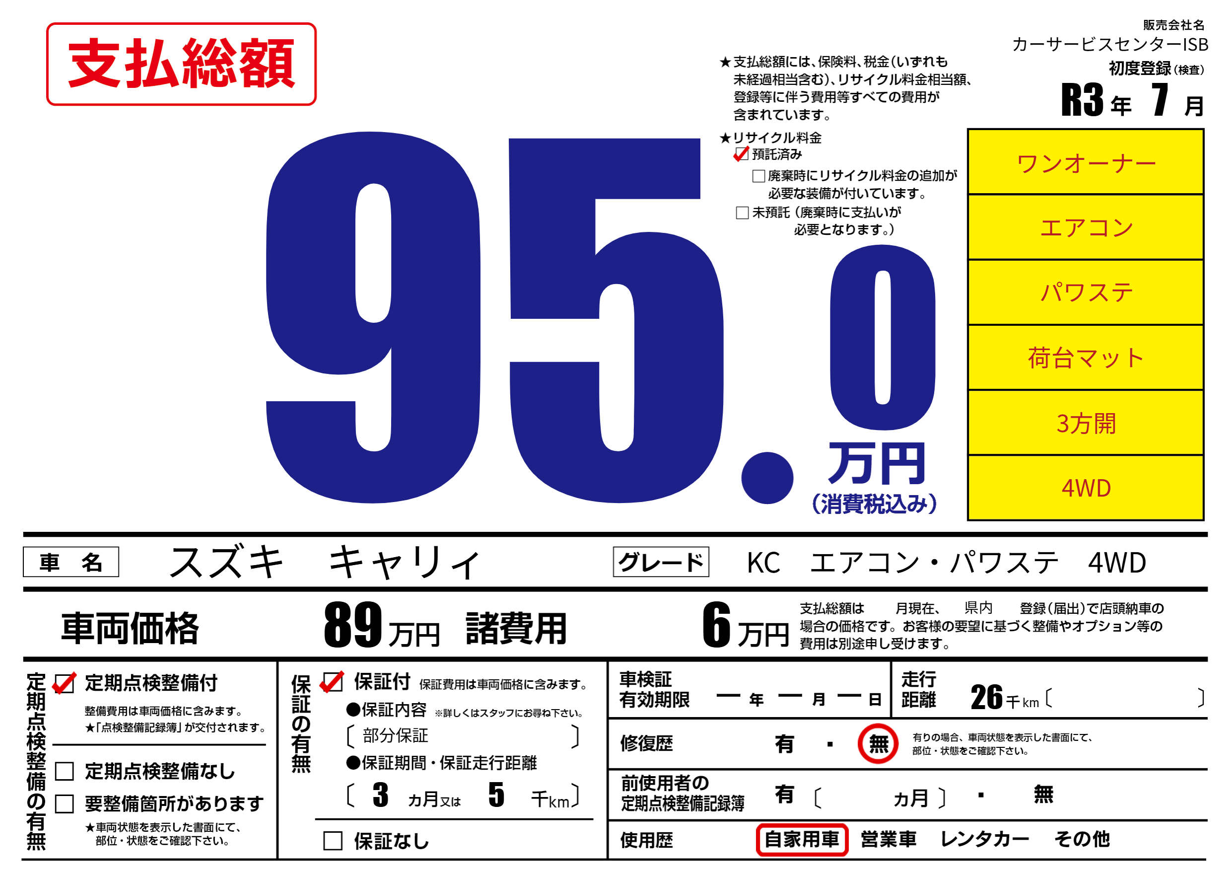 | 車名 | スズキ キャリィ | グレード ミッション 排気量 |