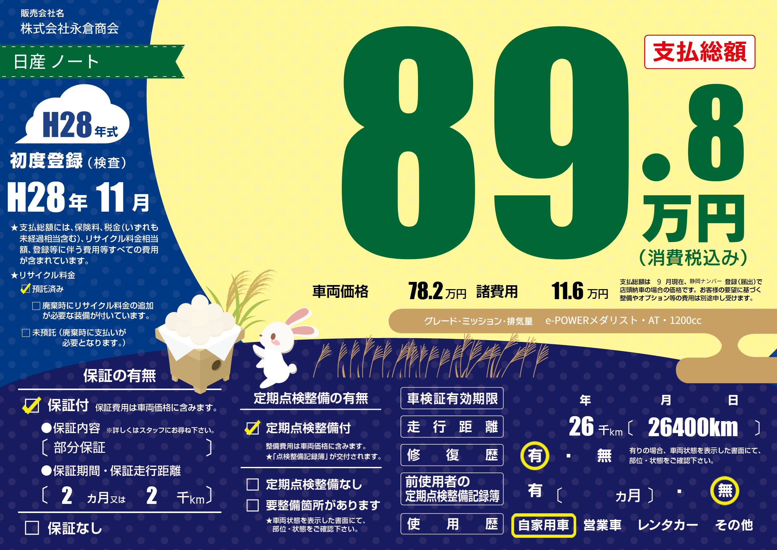 | 車名 | 日産 ノート | グレード ミッション 排気量 |