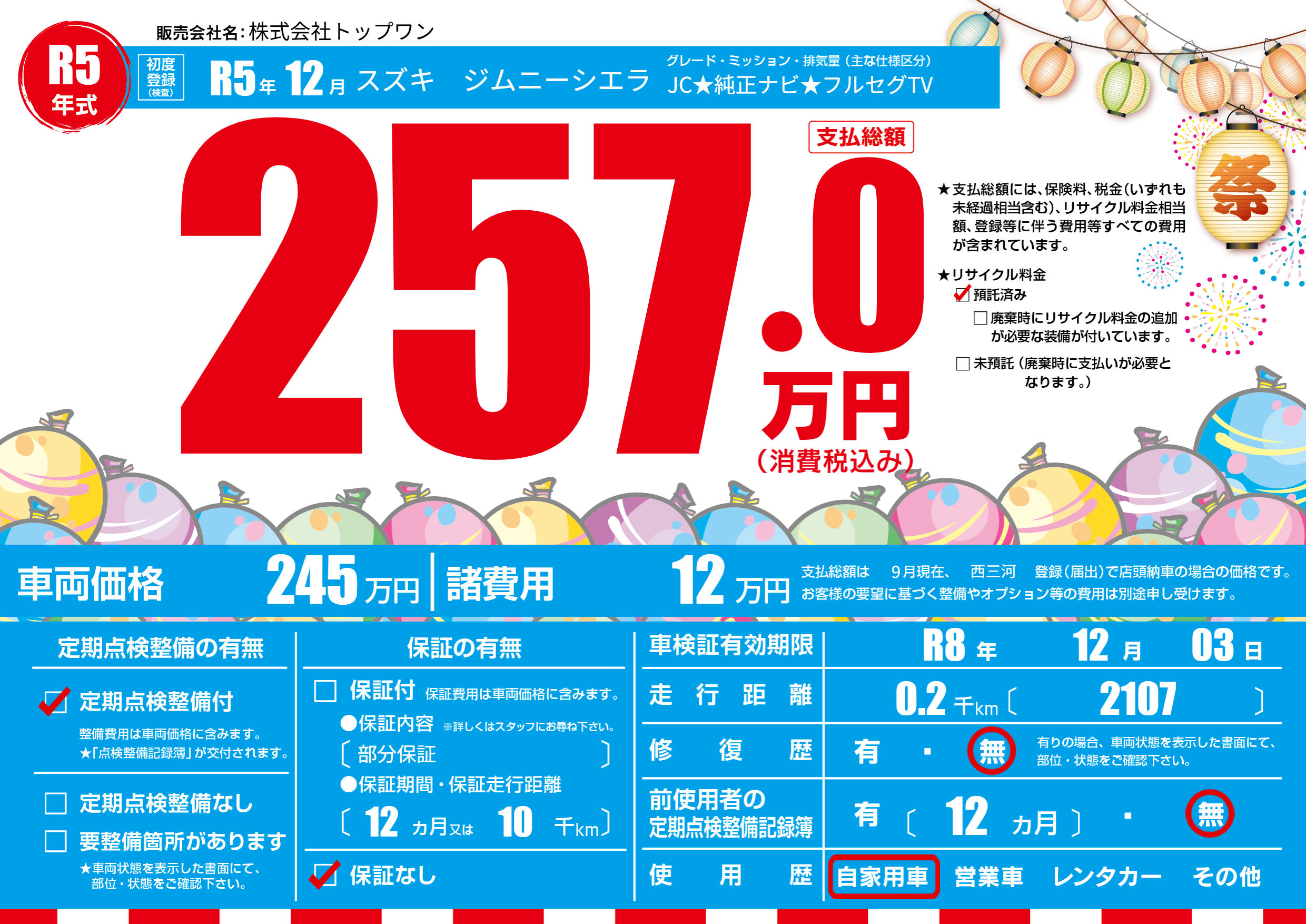 なし | 車検制限 | R8年12月03月 |