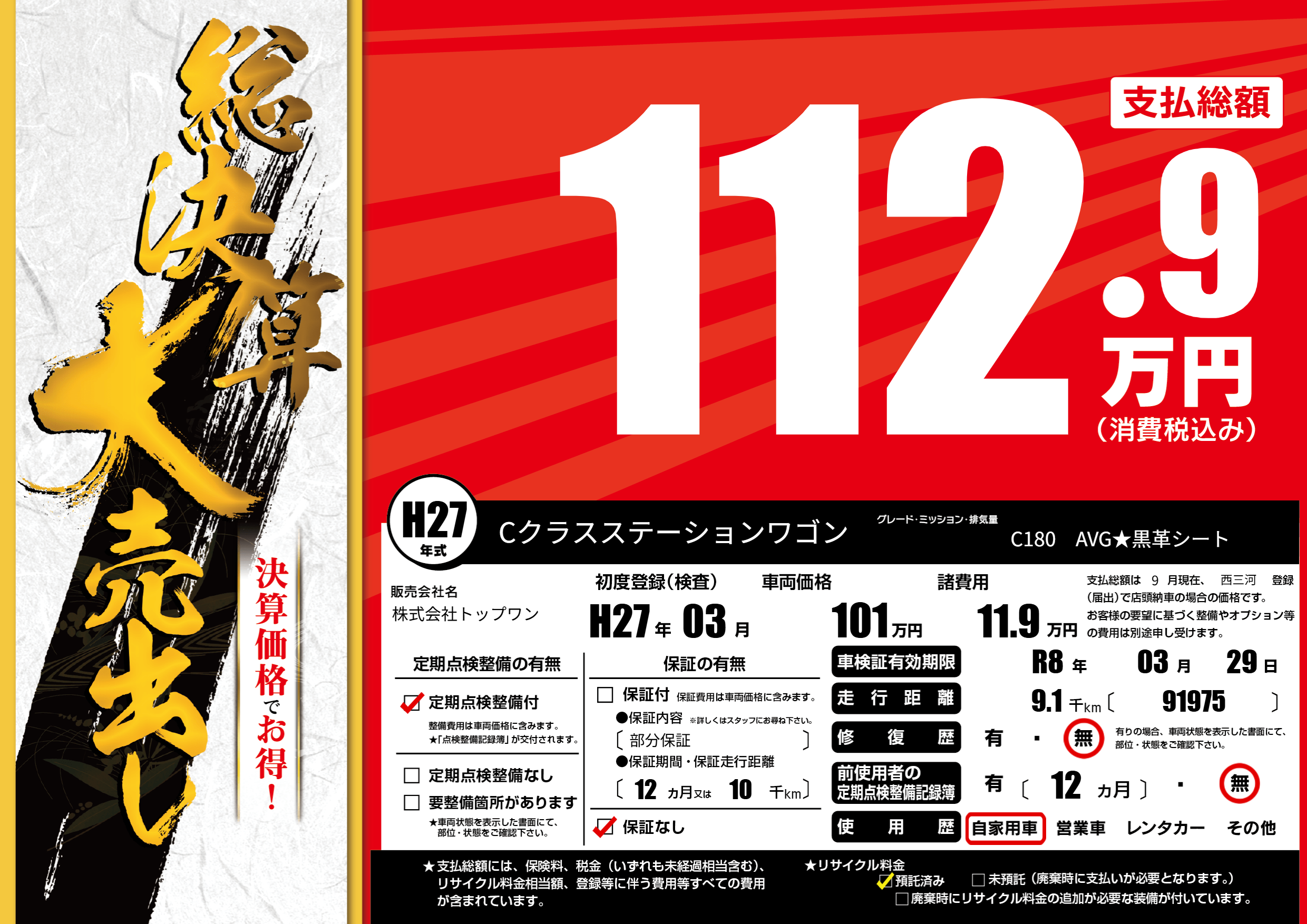 | 定期点検整備 | 定期点検整備あり | ||