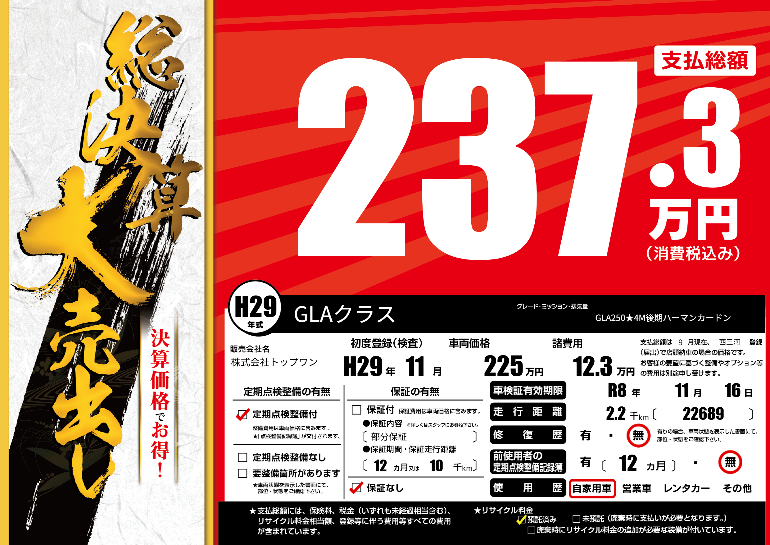 | 定期点検整備 | 定期点検整備あり | ||