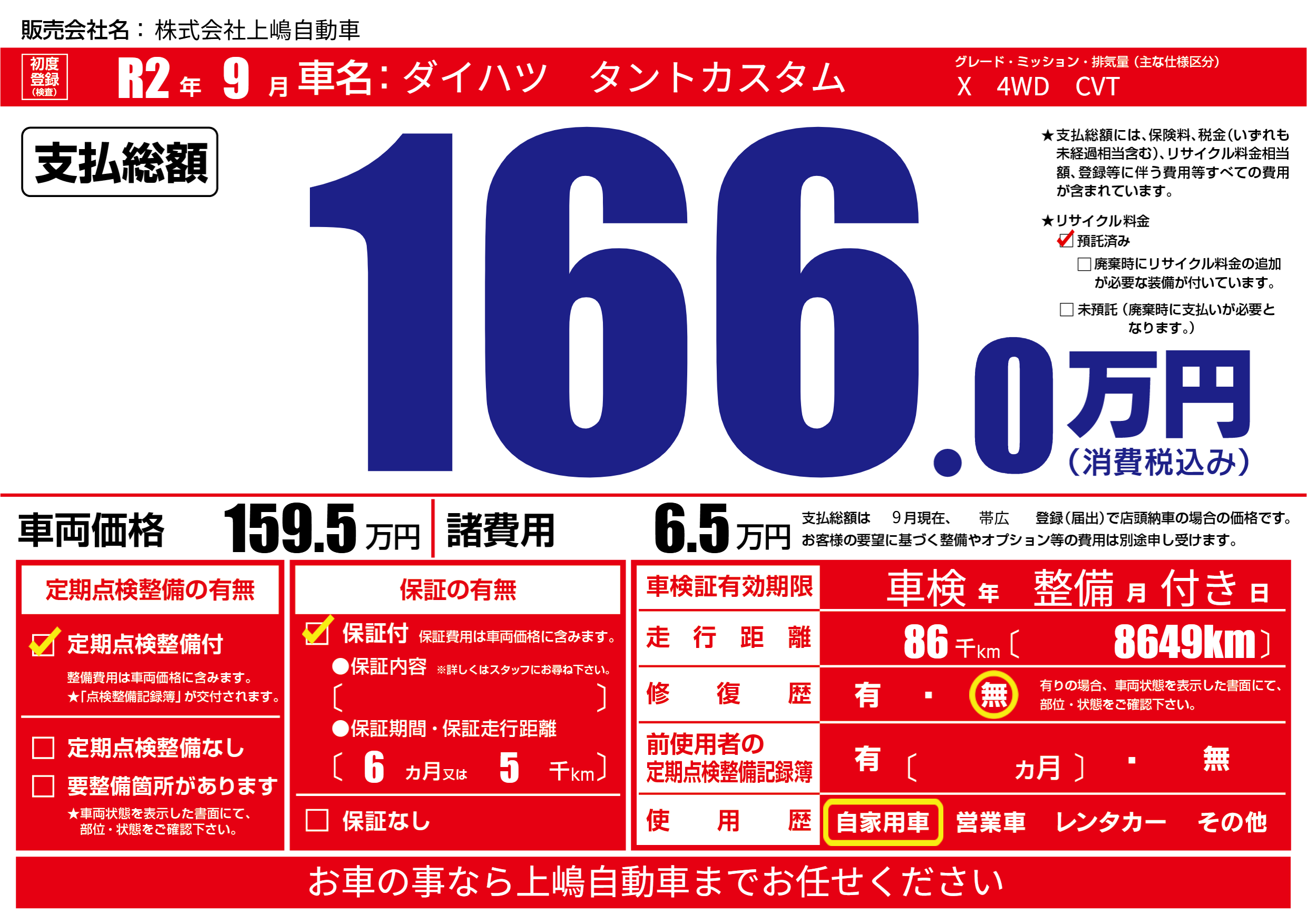 | 走行キロ | 8.6万km | 初年度登録 | R2年9月 |
