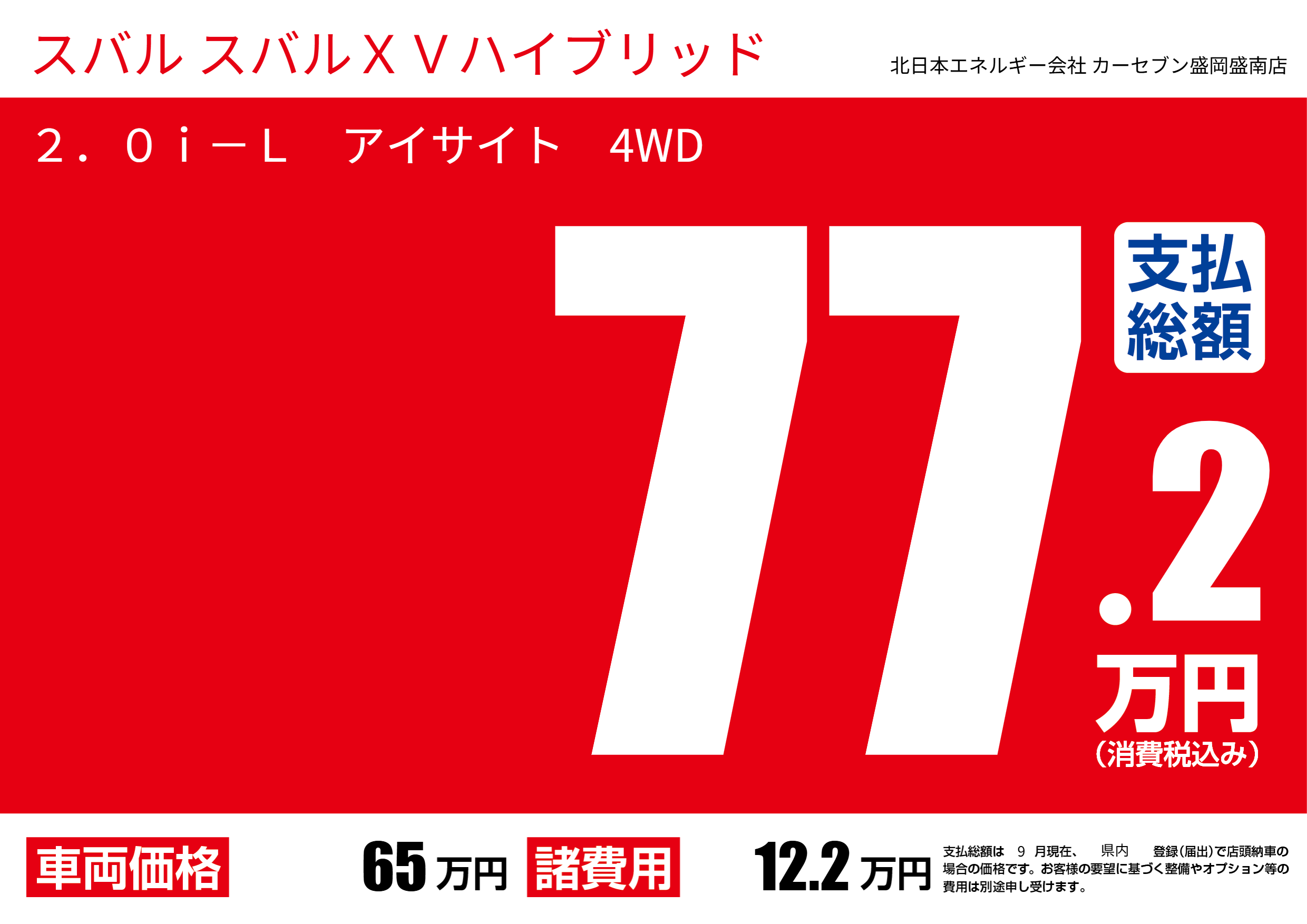 | 車名 | スバル スバルXVハイブリッド | グレード ミッション 排気量 |