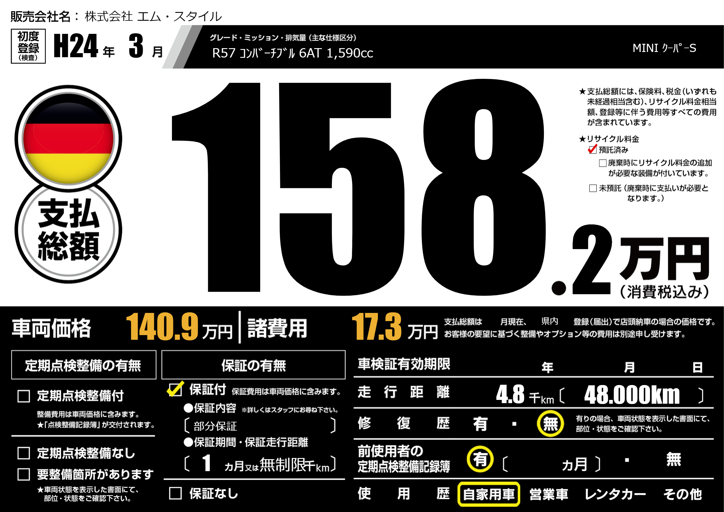 R57 コンバーチブル 6AT 1,590cc |