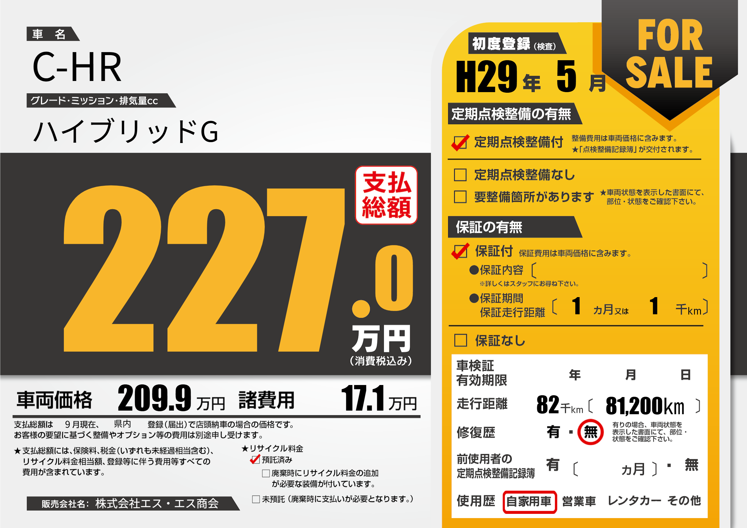 | 走行キロ | 8.2万km | 初年度登録 | H29年5月 |