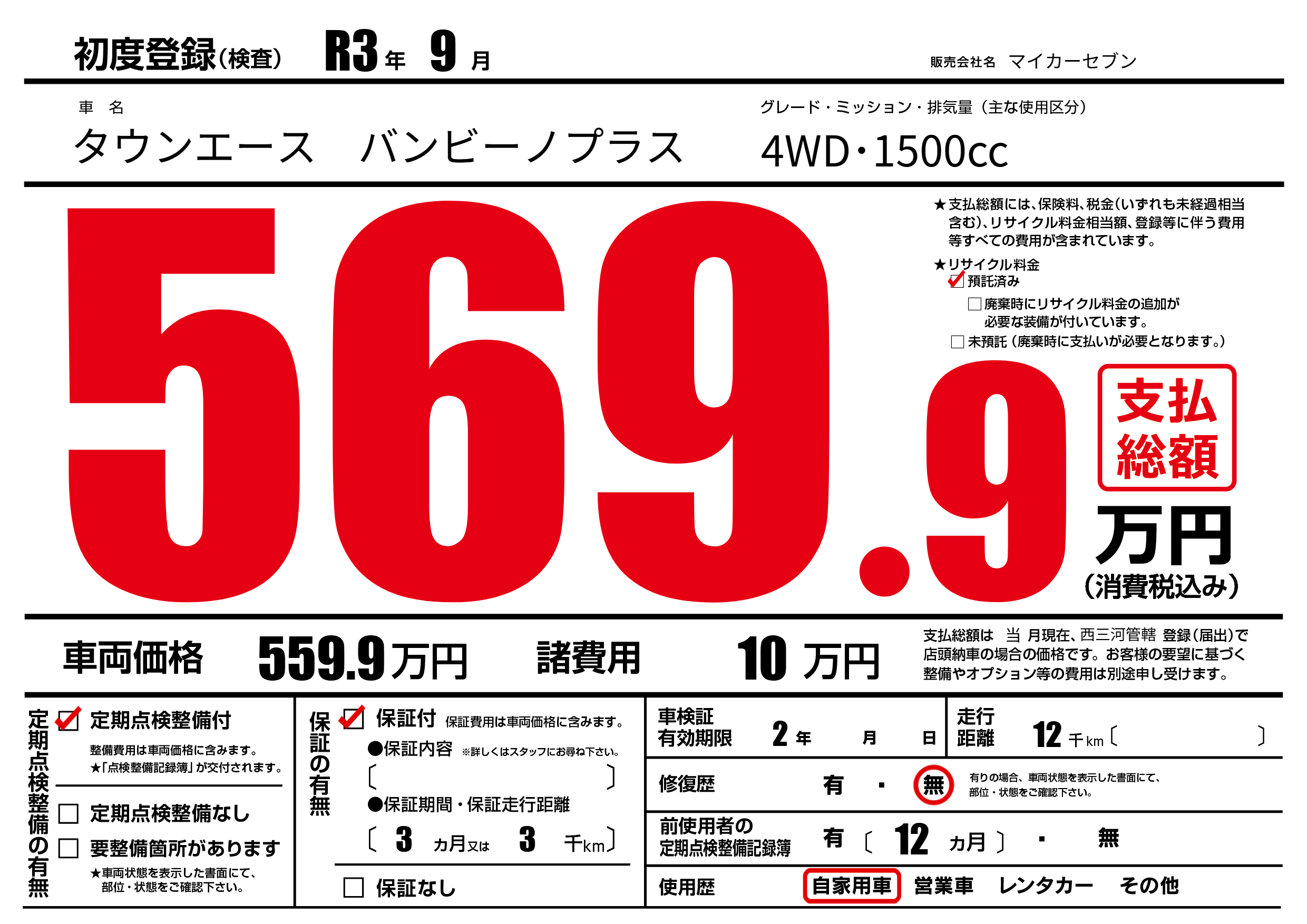 | 走行キロ | 1.2万km | 初年度登録 | R3年9月 |