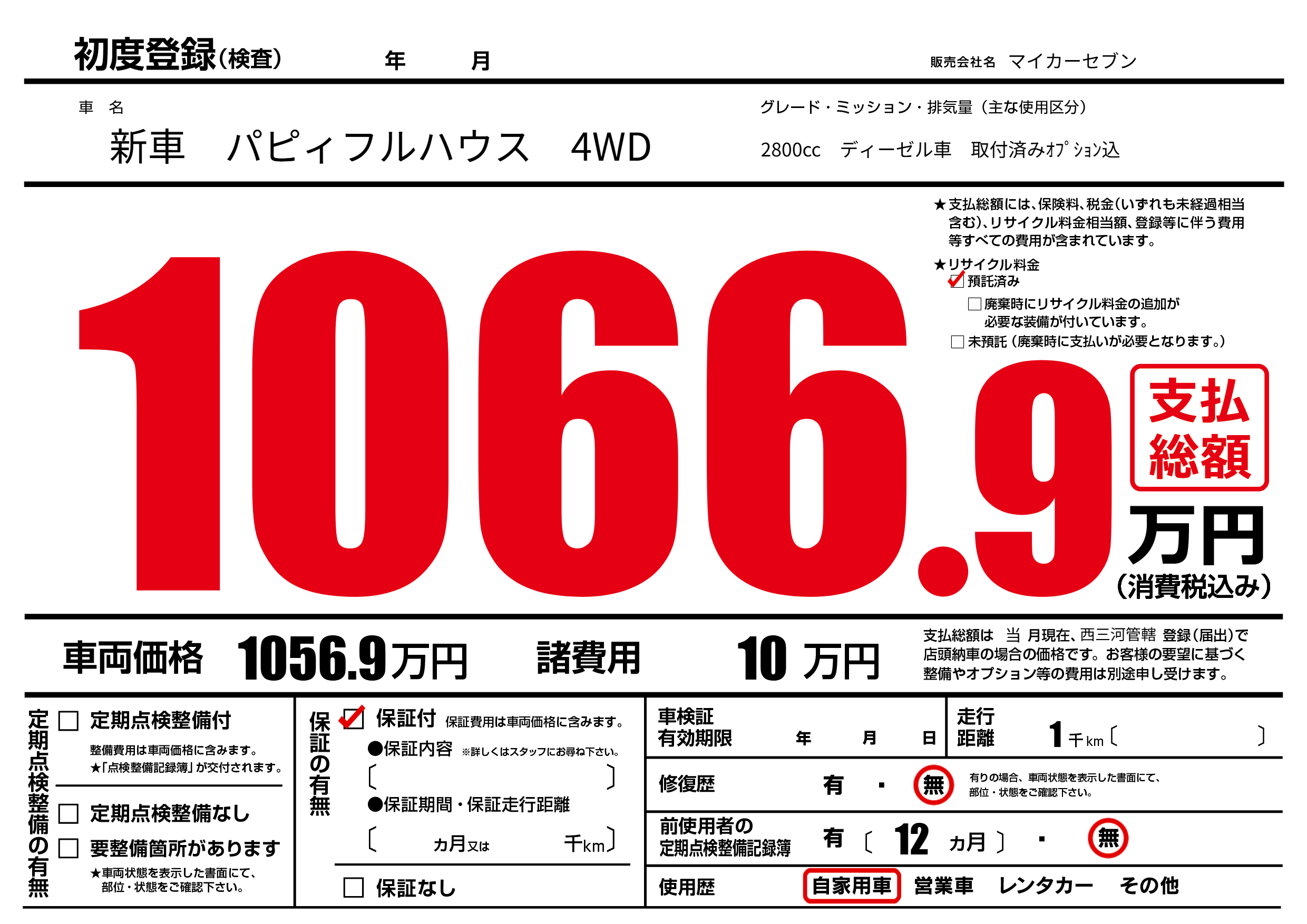 | 車名 | 新車 パピィフルハウス 4WD | グレード ミッション 排気量 |