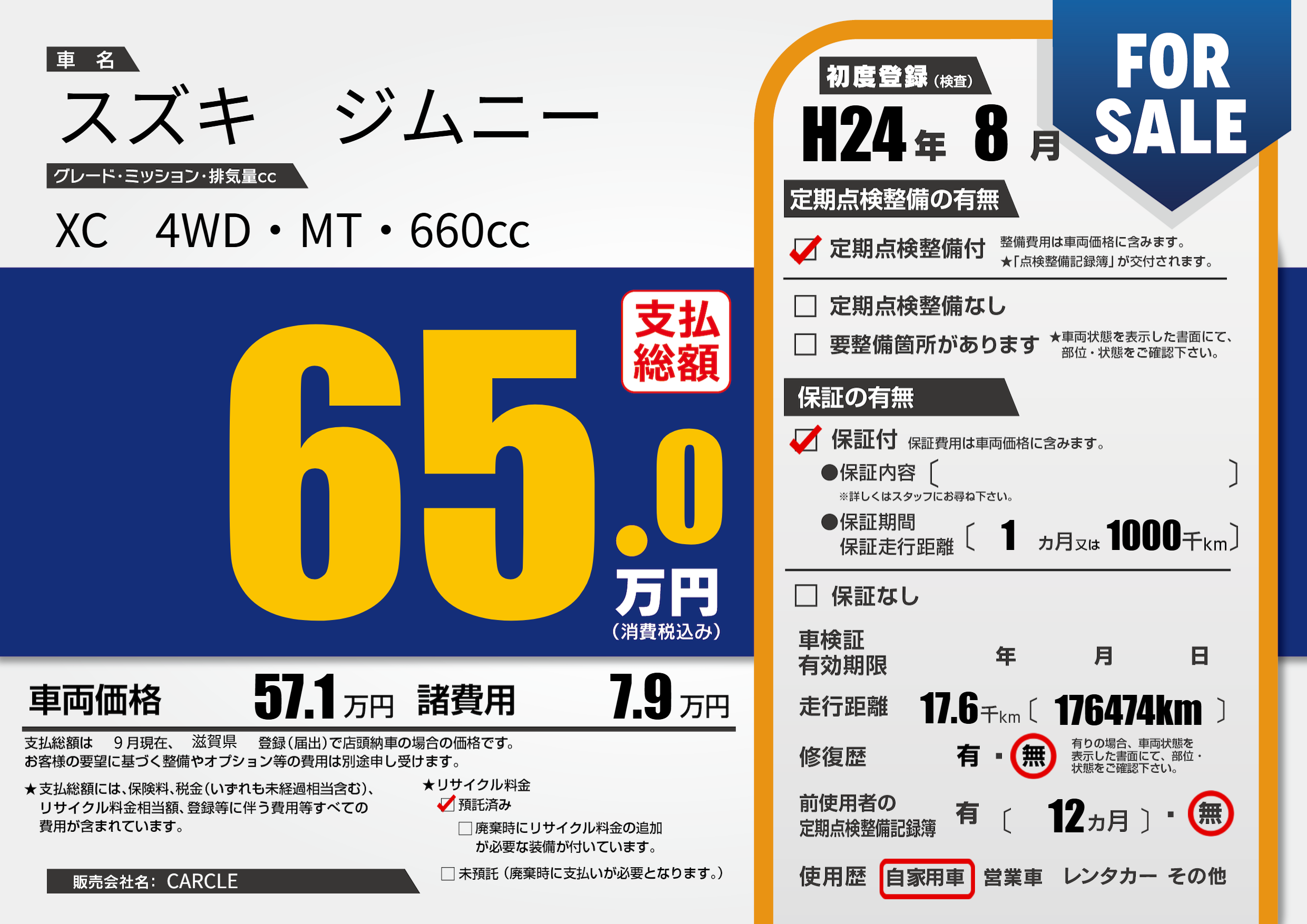 | 車検制限 | - 年 - 月 - 日 | ||