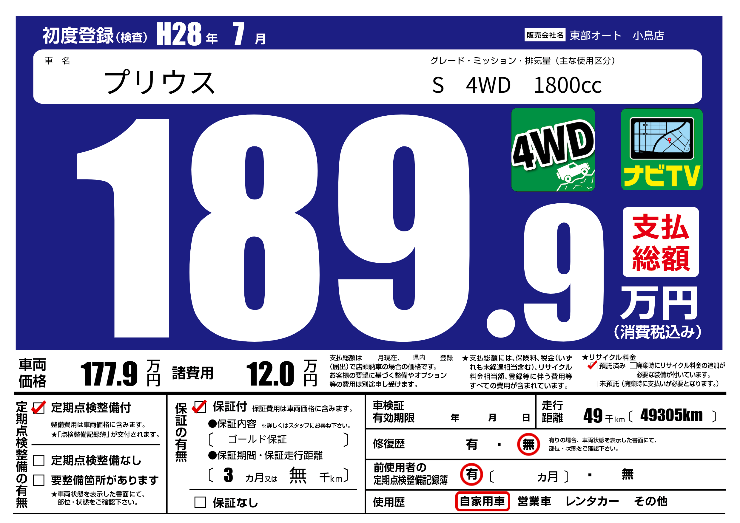 保証付き 保証内容( ゴールド保証) 3ヶ月または(無)千kmまで |