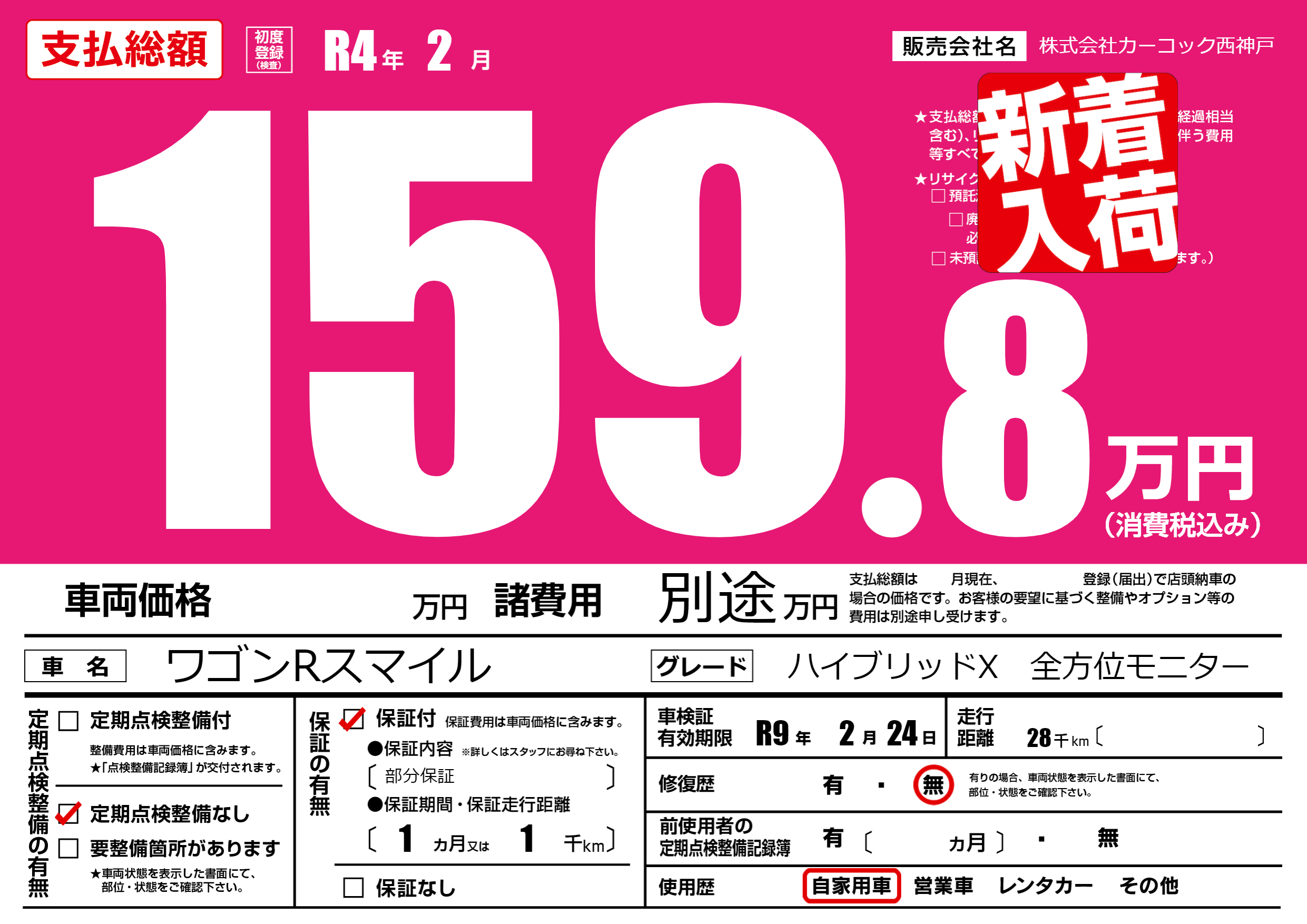 | 走行キロ | 2.8万km | 初年度登録 | R4年2月 |