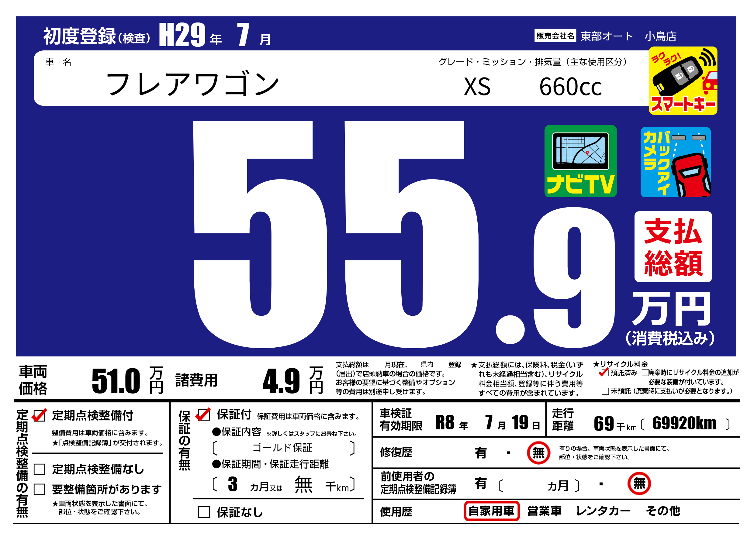 | 走行キロ | 6.9万km | 初年度登録 | H29年7月 |
