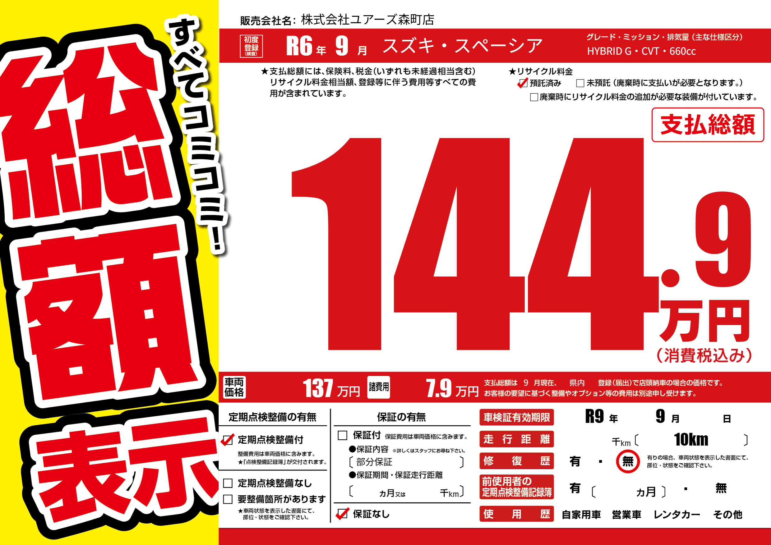 なし | 車検制限 | R9年9月---月 |