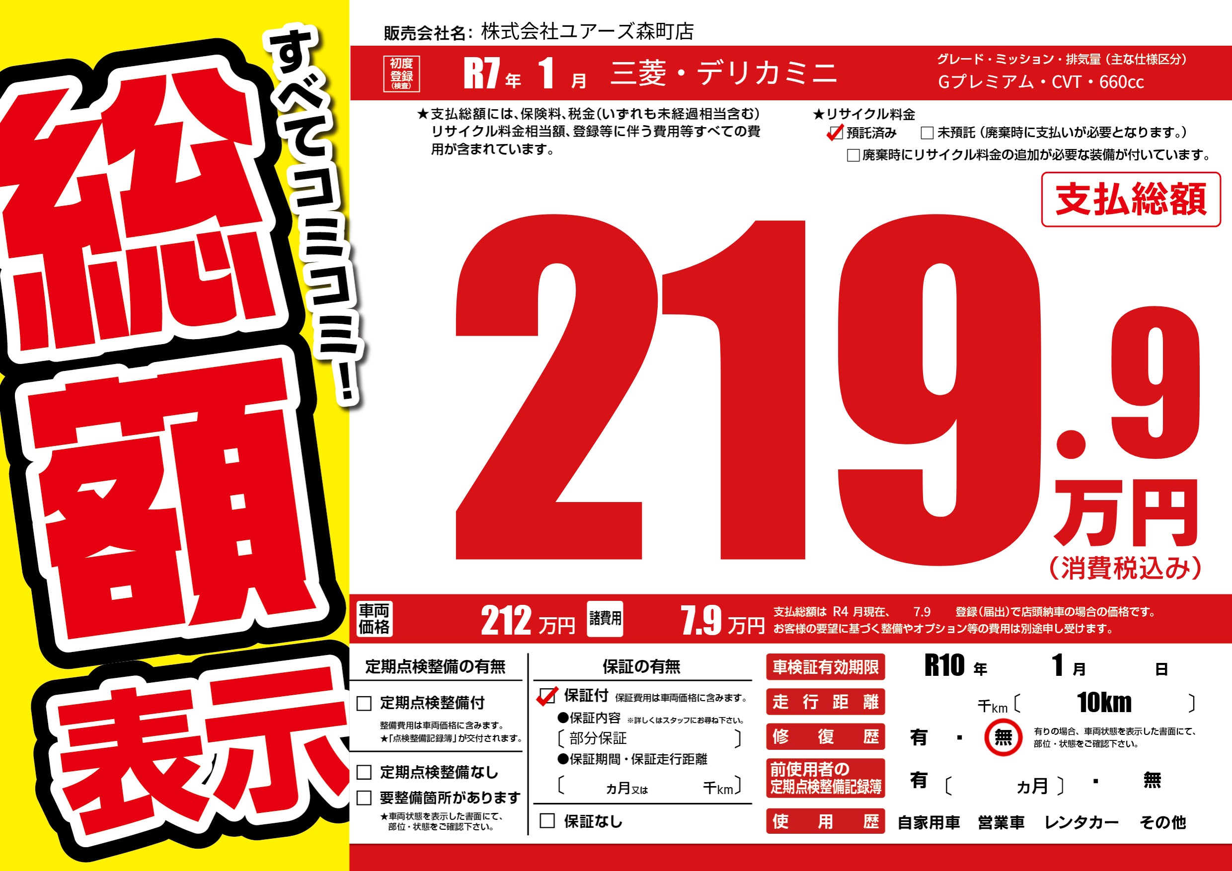 | 車名 | 三菱・デリカミニ | グレード ミッション 排気量 |