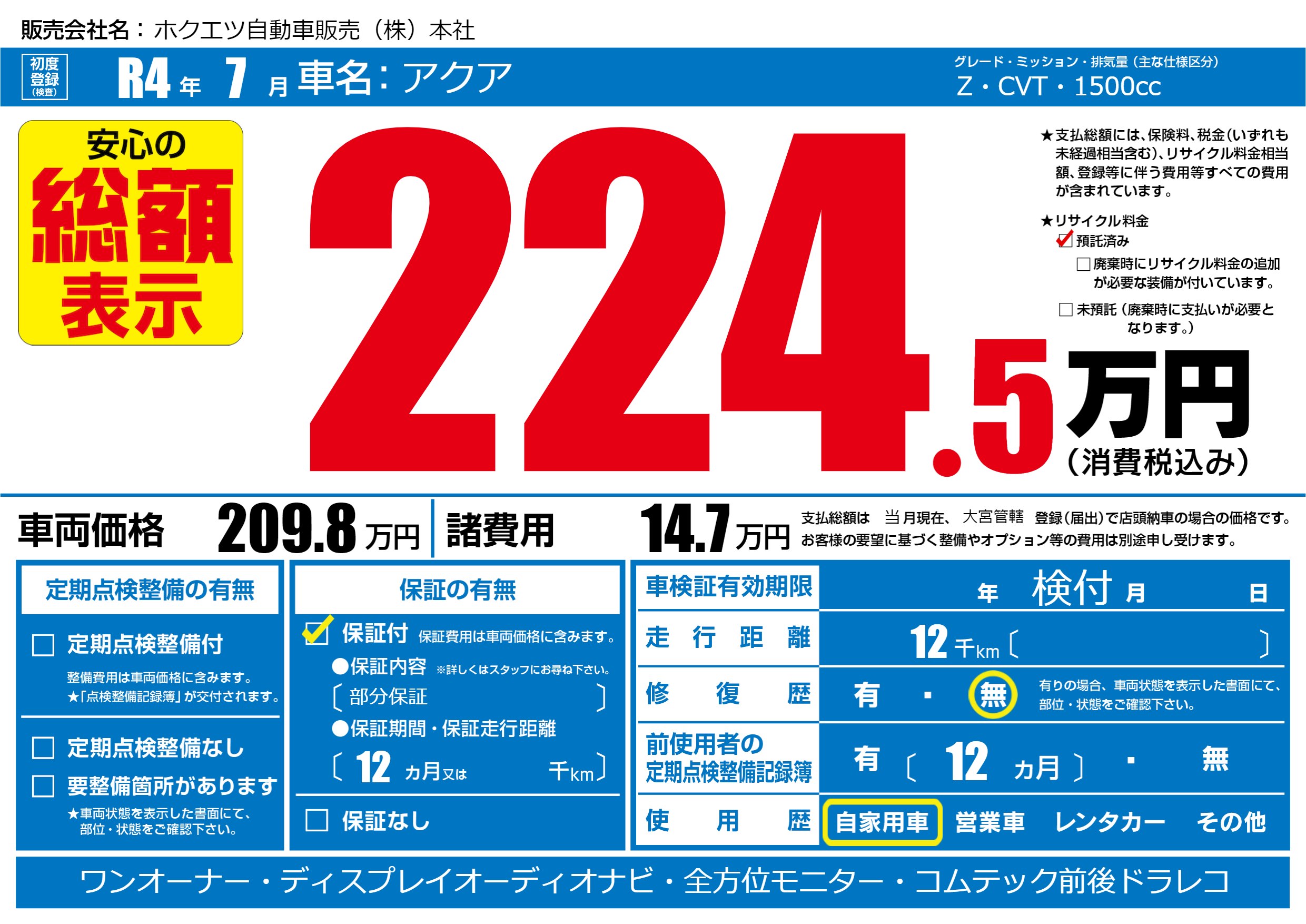 保証付き 保証内容(部分保証) 12ヶ月または()千kmまで |