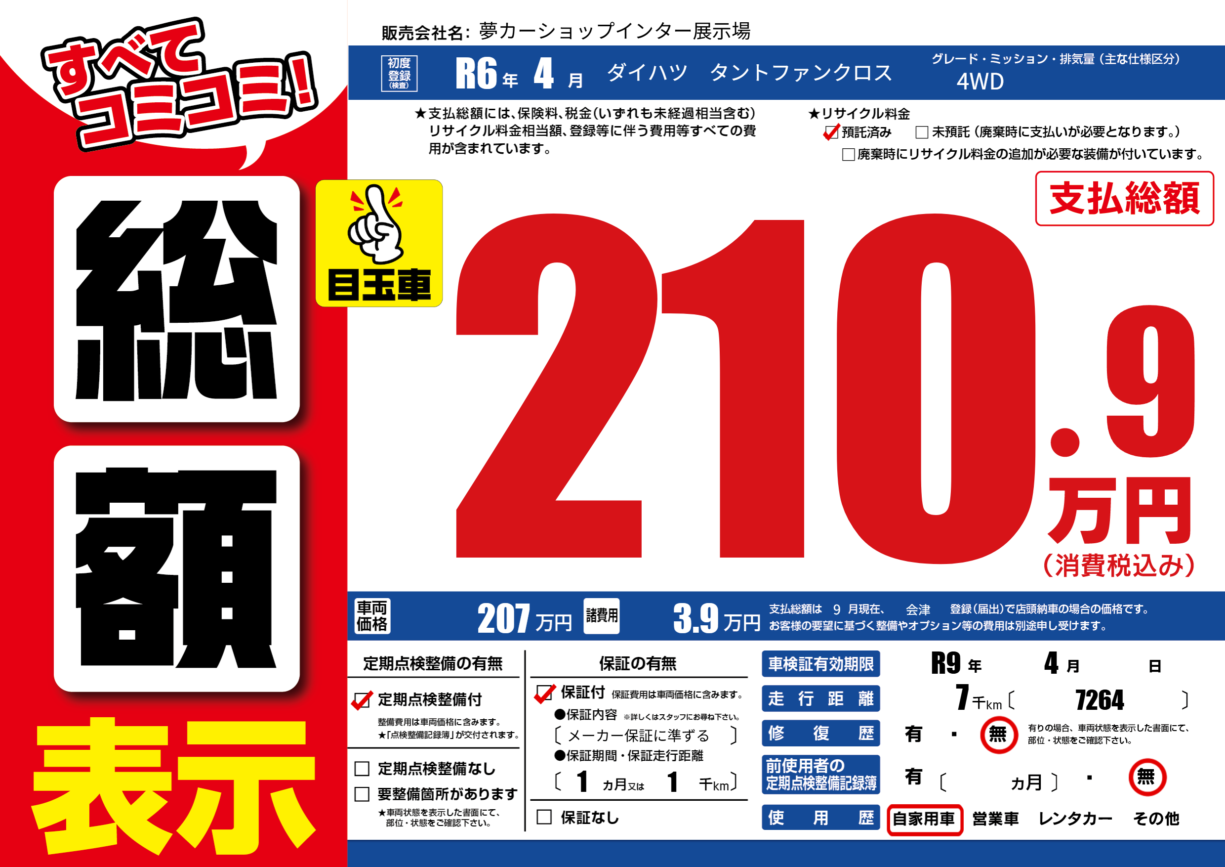 | 走行キロ | 0.7万km | 初年度登録 | R6年4月 |