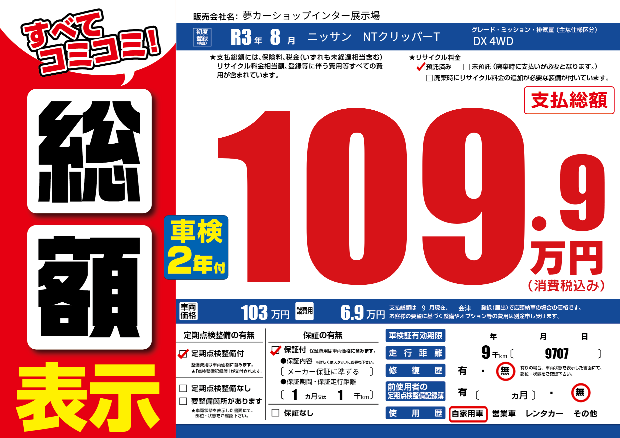| 定期点検整備 | 定期点検整備あり | ||