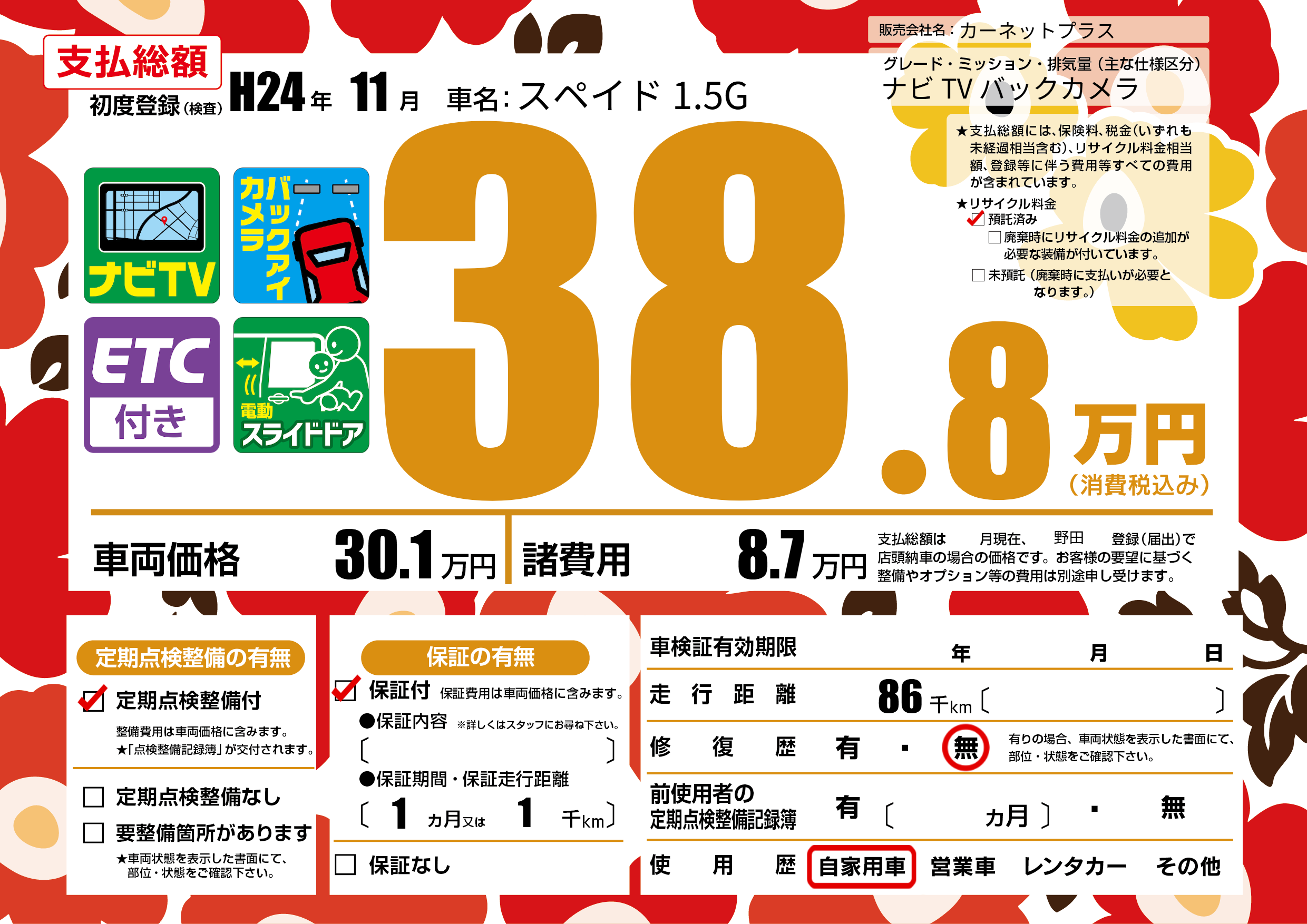 | 車検制限 | - 年 - 月 - 日 | ||