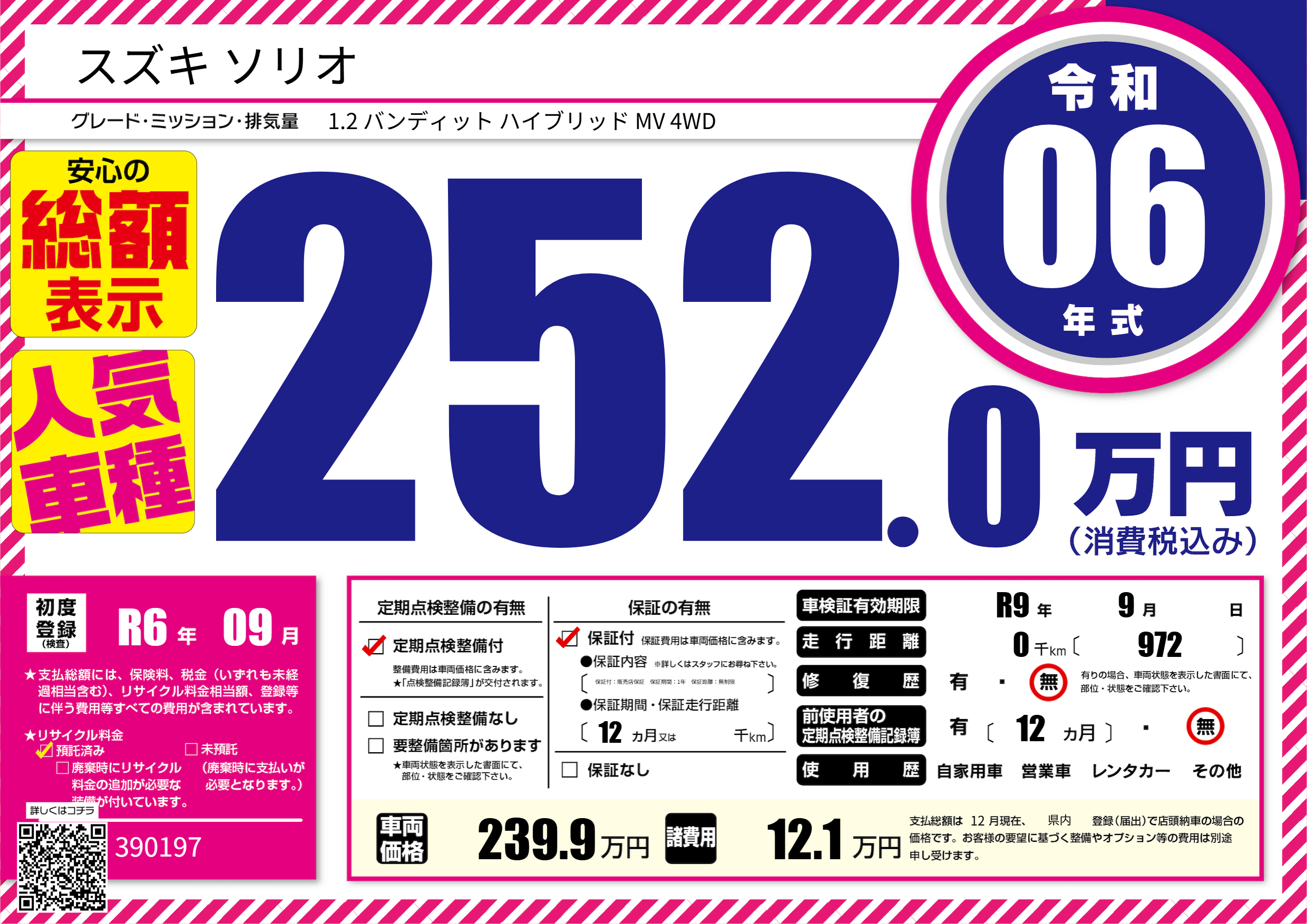 | 走行キロ | - | 初年度登録 | R6年09月 |