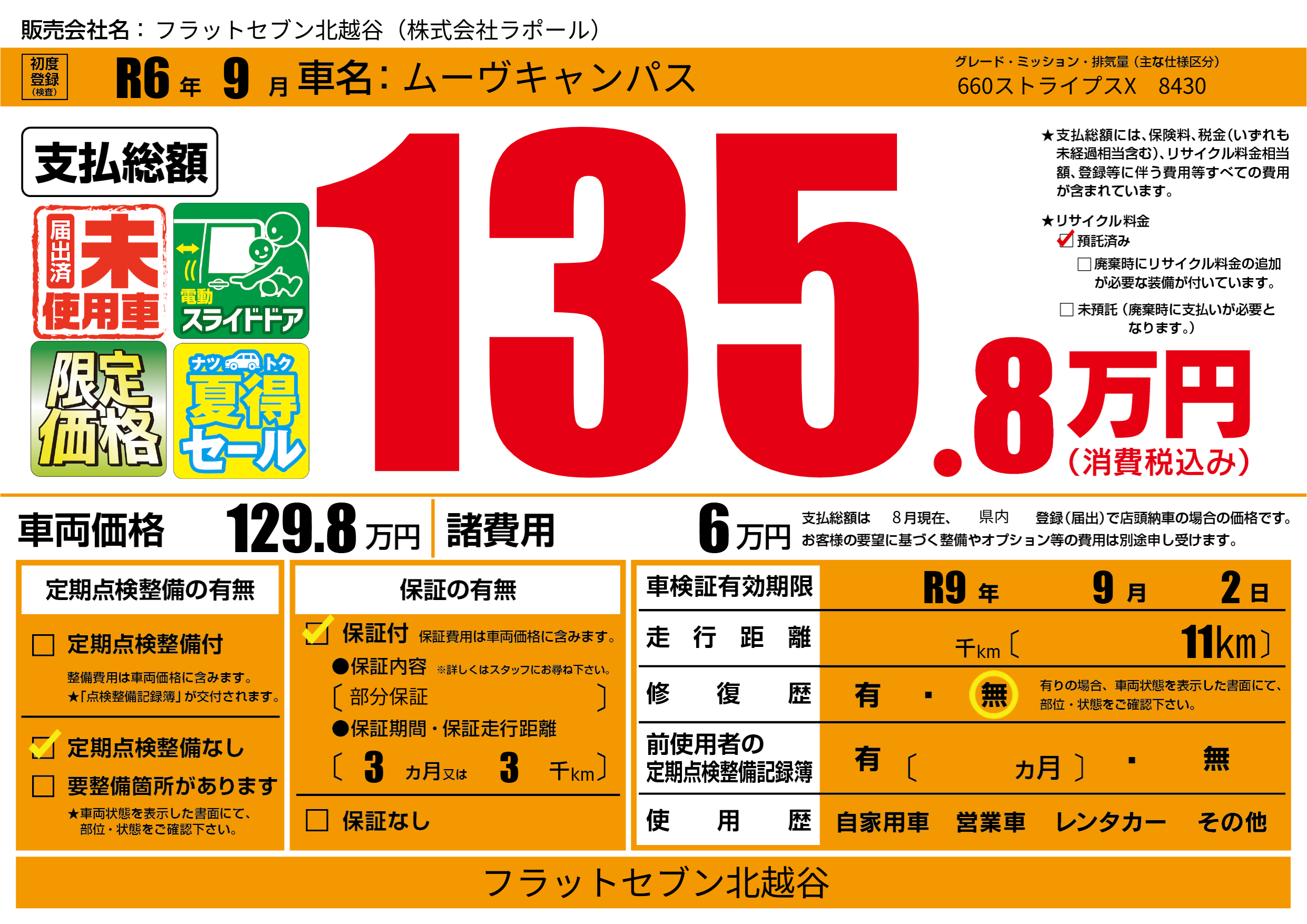 なし | 車検制限 | R9年9月2月 |