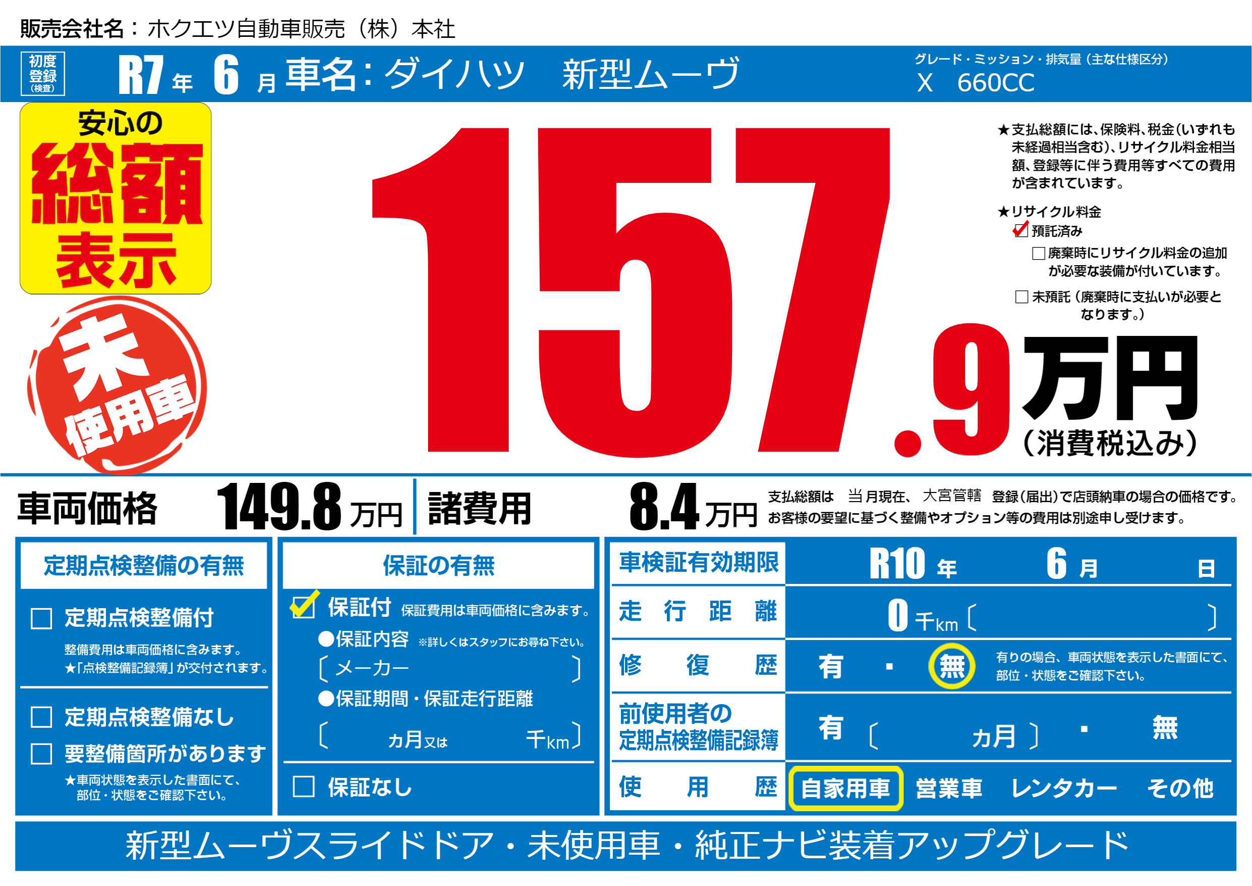 | 走行キロ | - | 初年度登録 | R7年6月 |