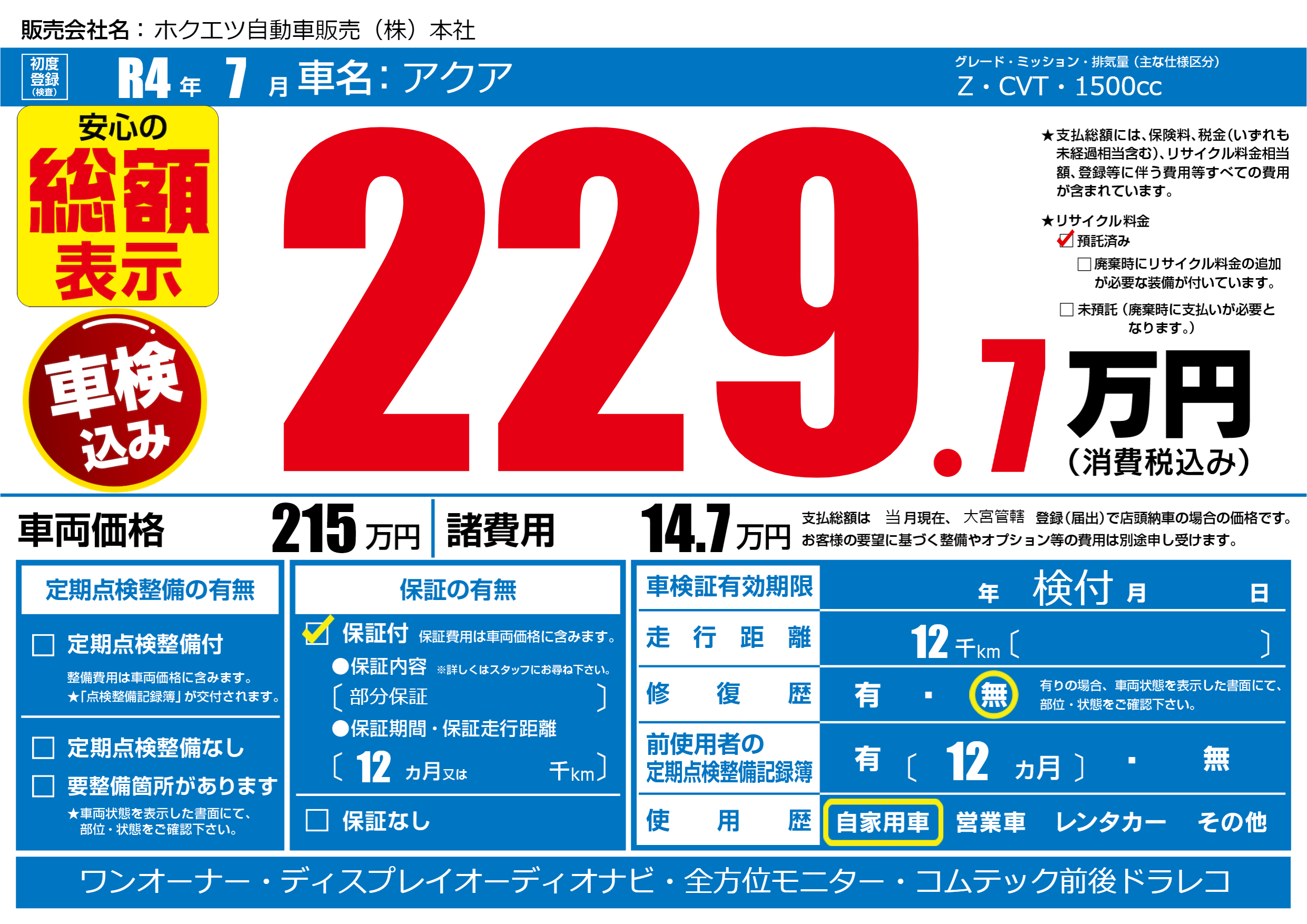 | 走行キロ | 1.2万km | 初年度登録 | R4年7月 |
