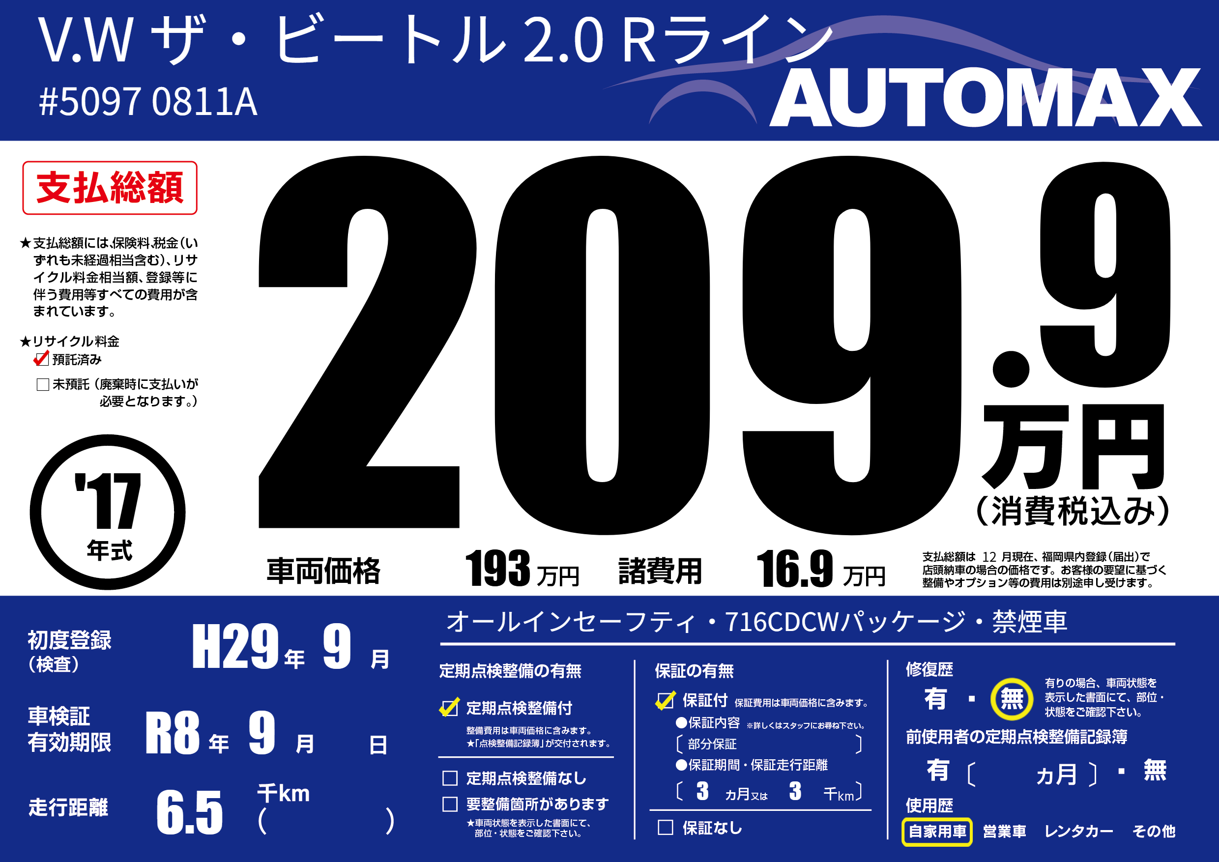 | 車検制限 | R8年 9月 - 日 | ||