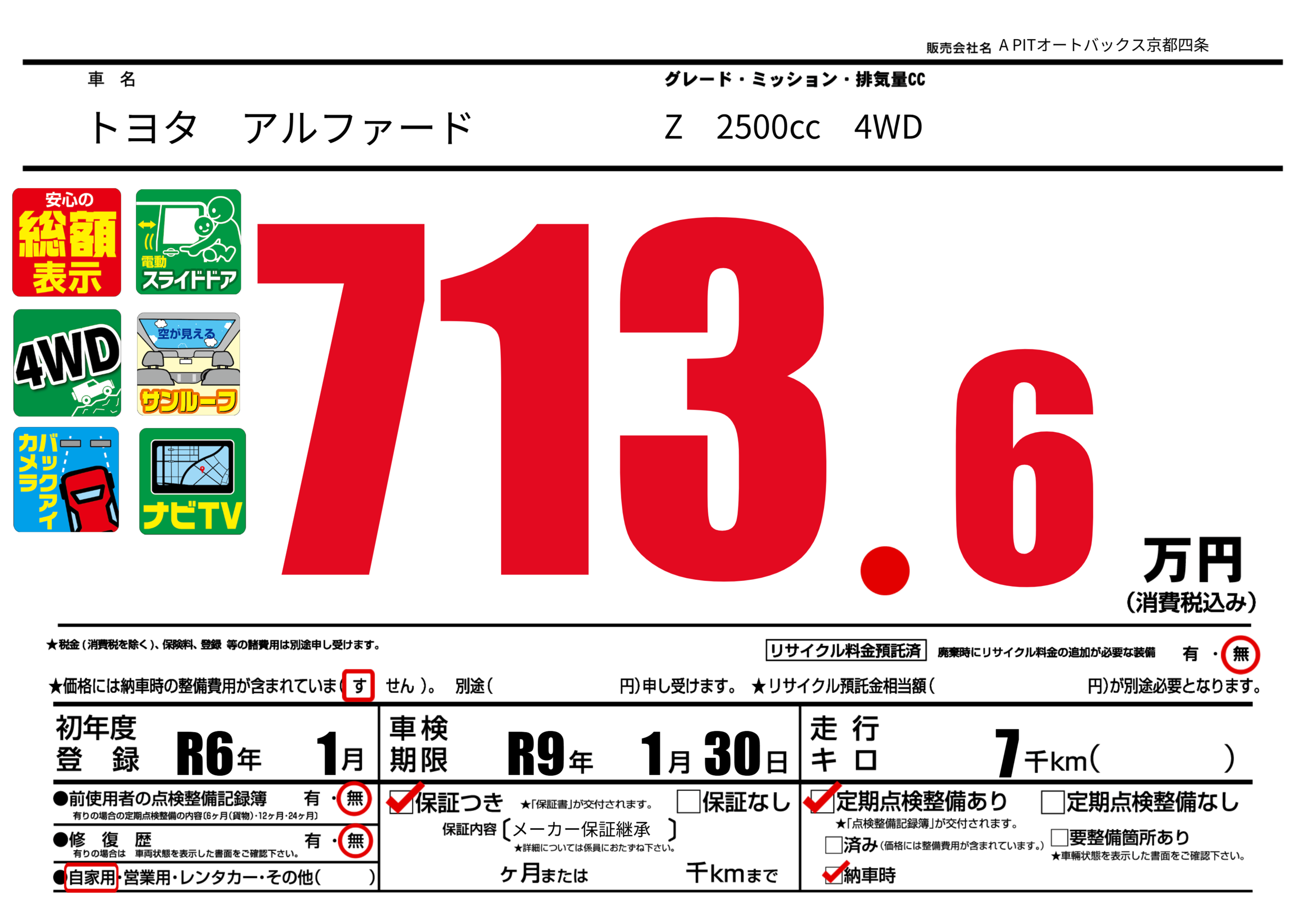 あり | 車検制限 | R9年1月30月 |