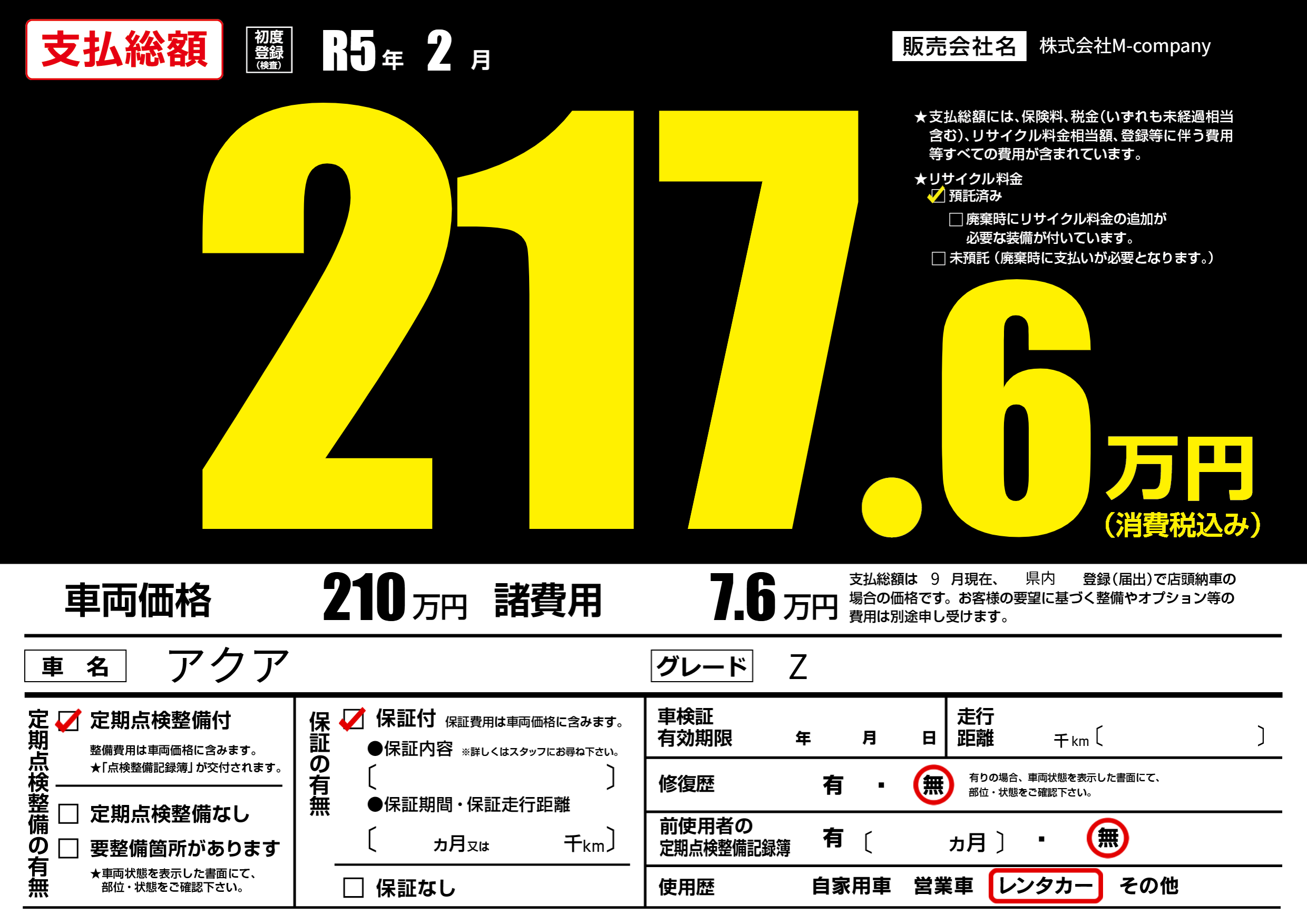 | 走行キロ | - | 初年度登録 | R5年2月 |