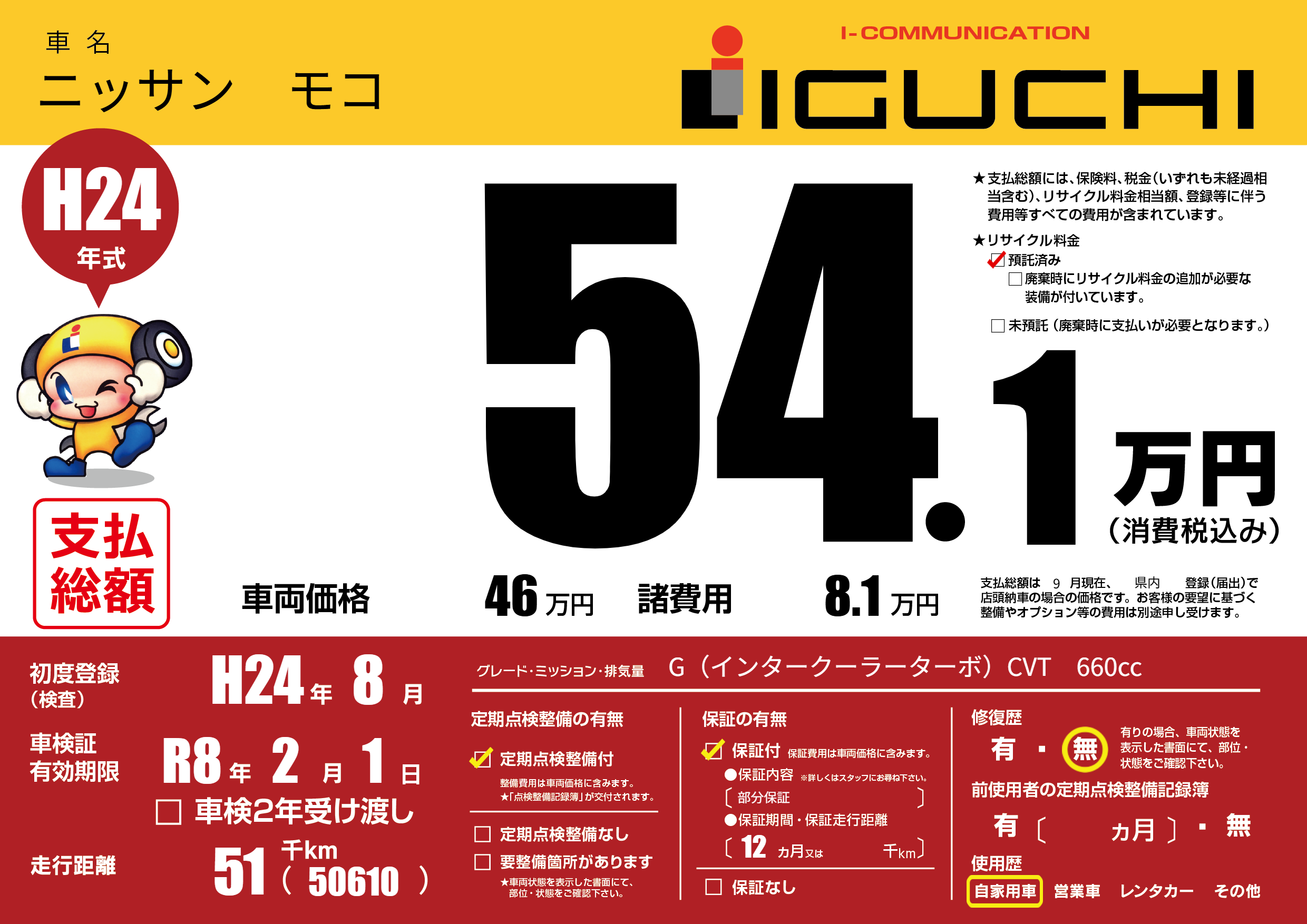 | 車名 | ニッサン モコ | グレード ミッション 排気量 |