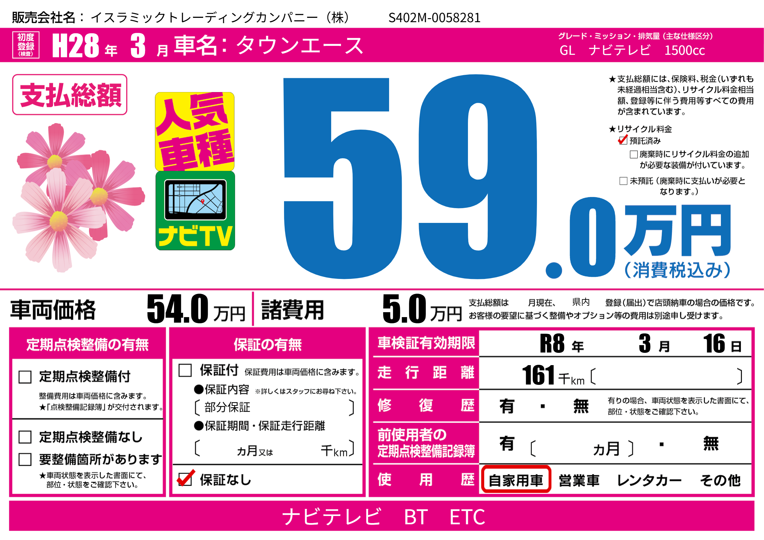 | 車検制限 | R8年 3月 16日 | ||