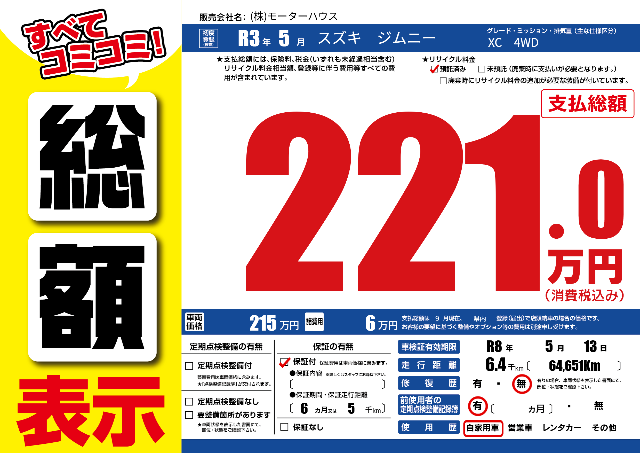 | 走行キロ | 0.6万km | 初年度登録 | R3年5月 |