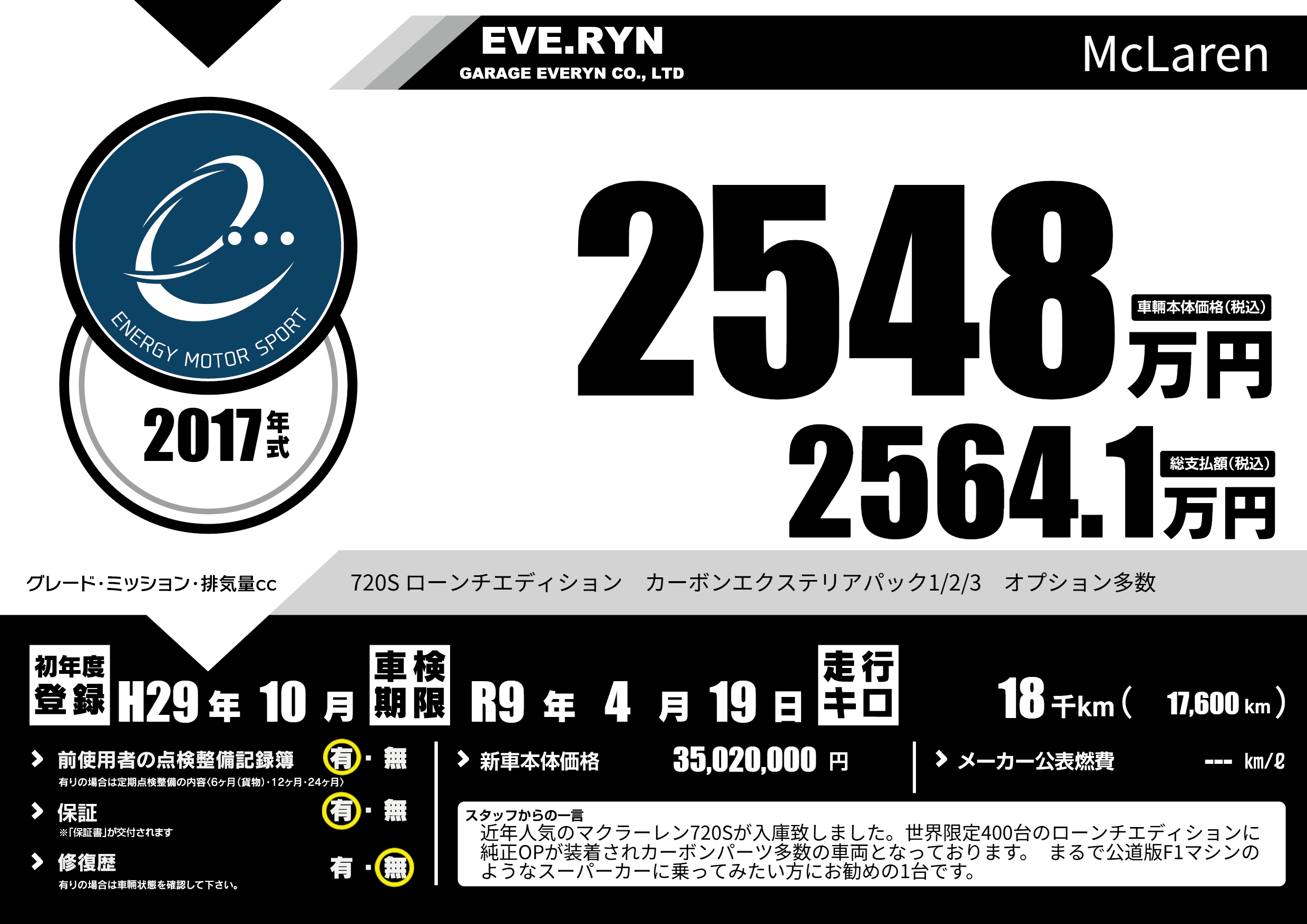 720S ローンチエディション カーボンエクステリアパック1/2/3 オプション多数 |