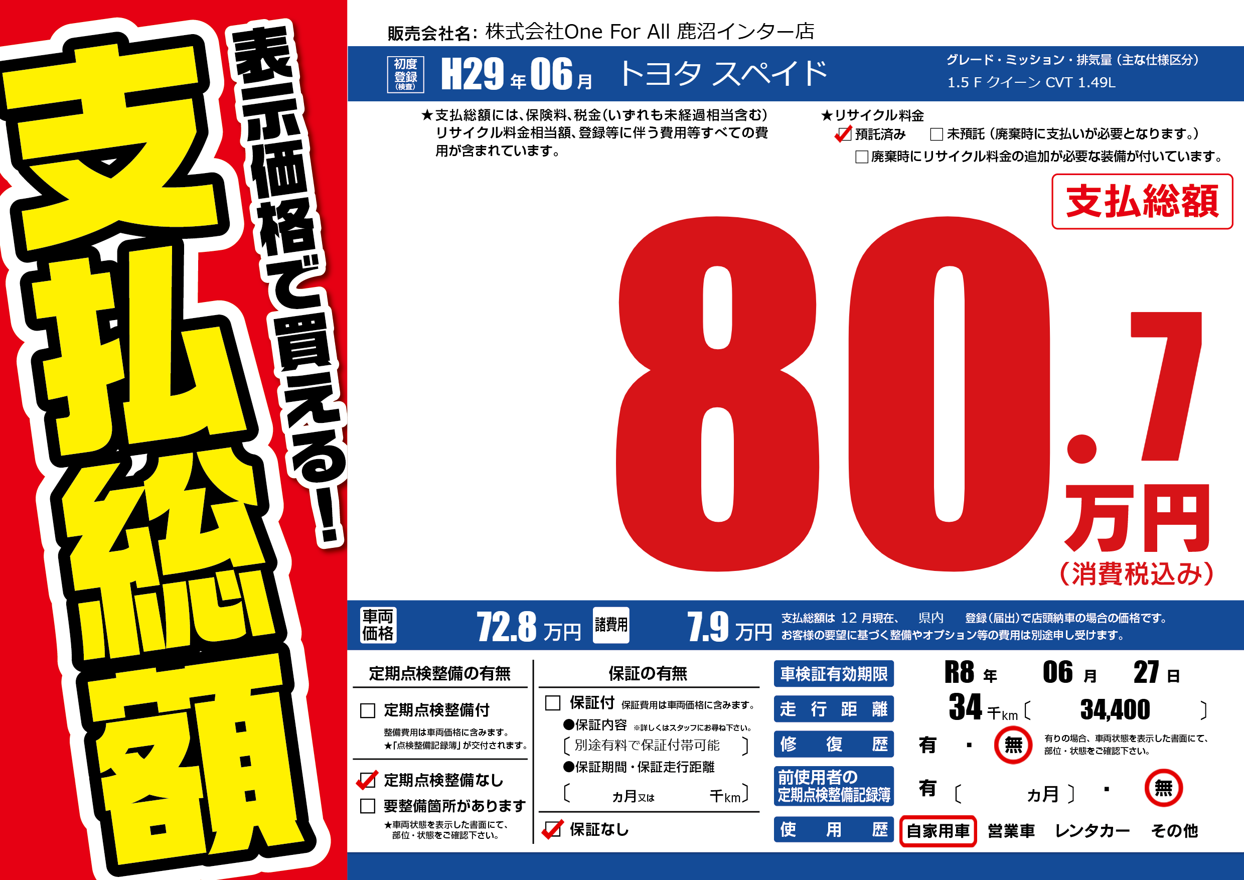 なし | 車検制限 | R8年06月27月 |