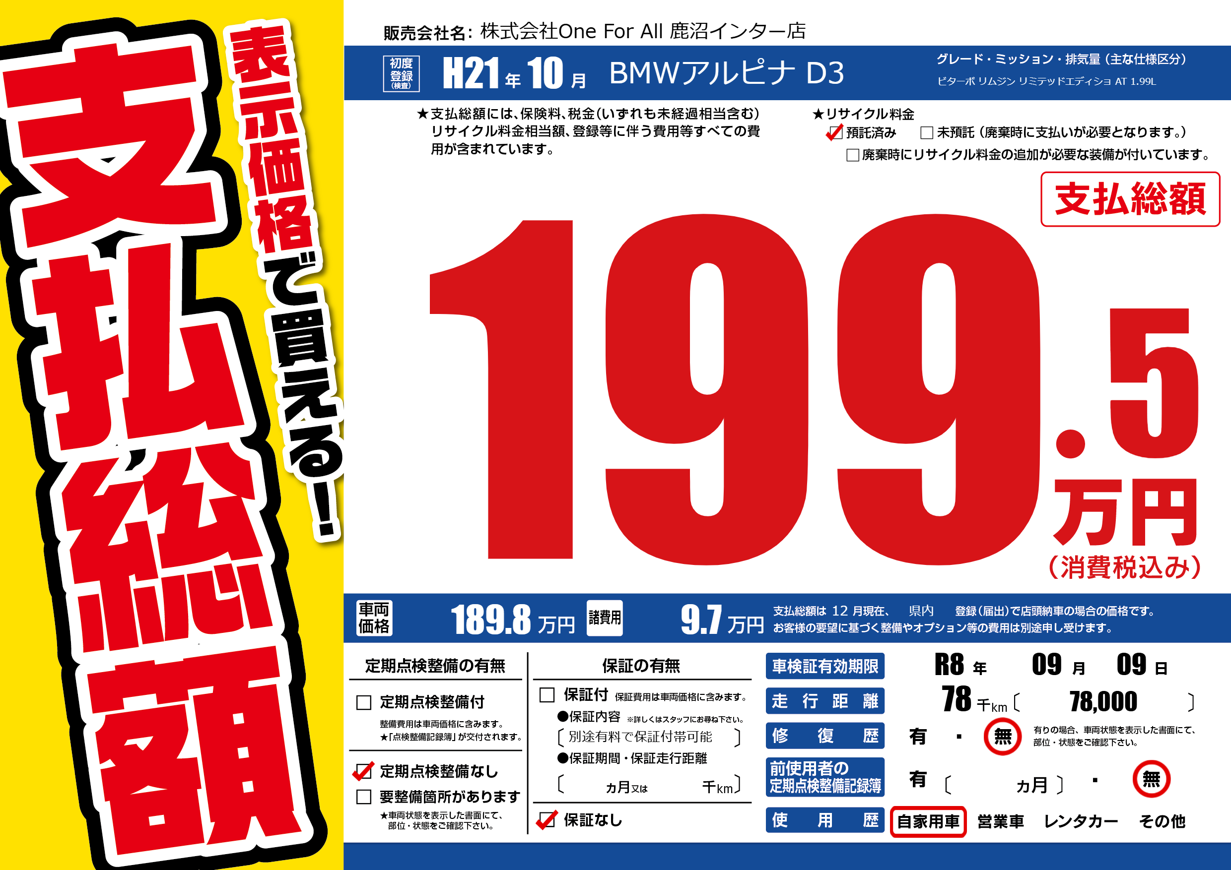 なし | 車検制限 | R8年09月09月 |
