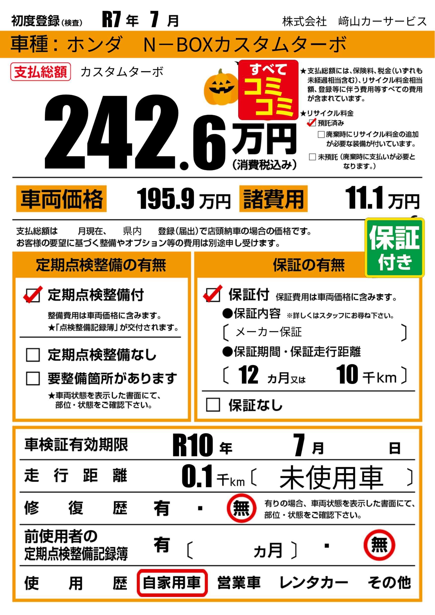 | 車検制限 | R10年 7月 - 日 | ||