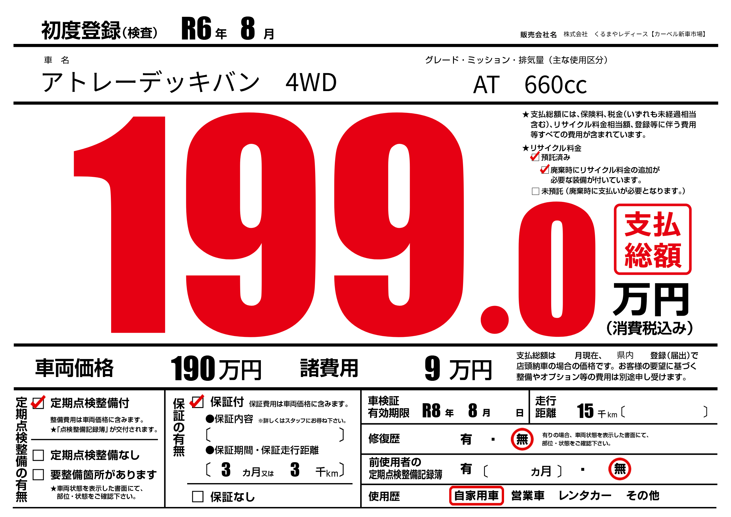 初年度登録 R6年8月