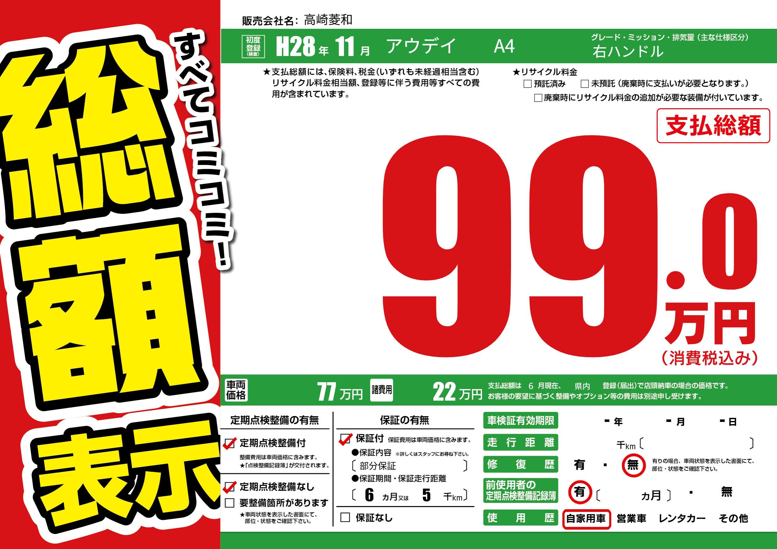 保証付き 保証内容(部分保証) 6ヶ月または(5)千kmまで |