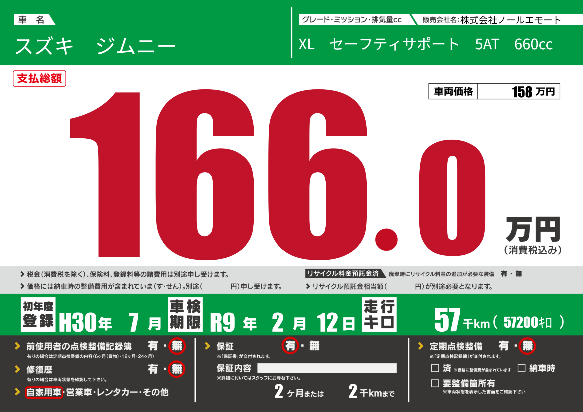 | 走行キロ | 5.7万km | 初年度登録 | H30年7月 |