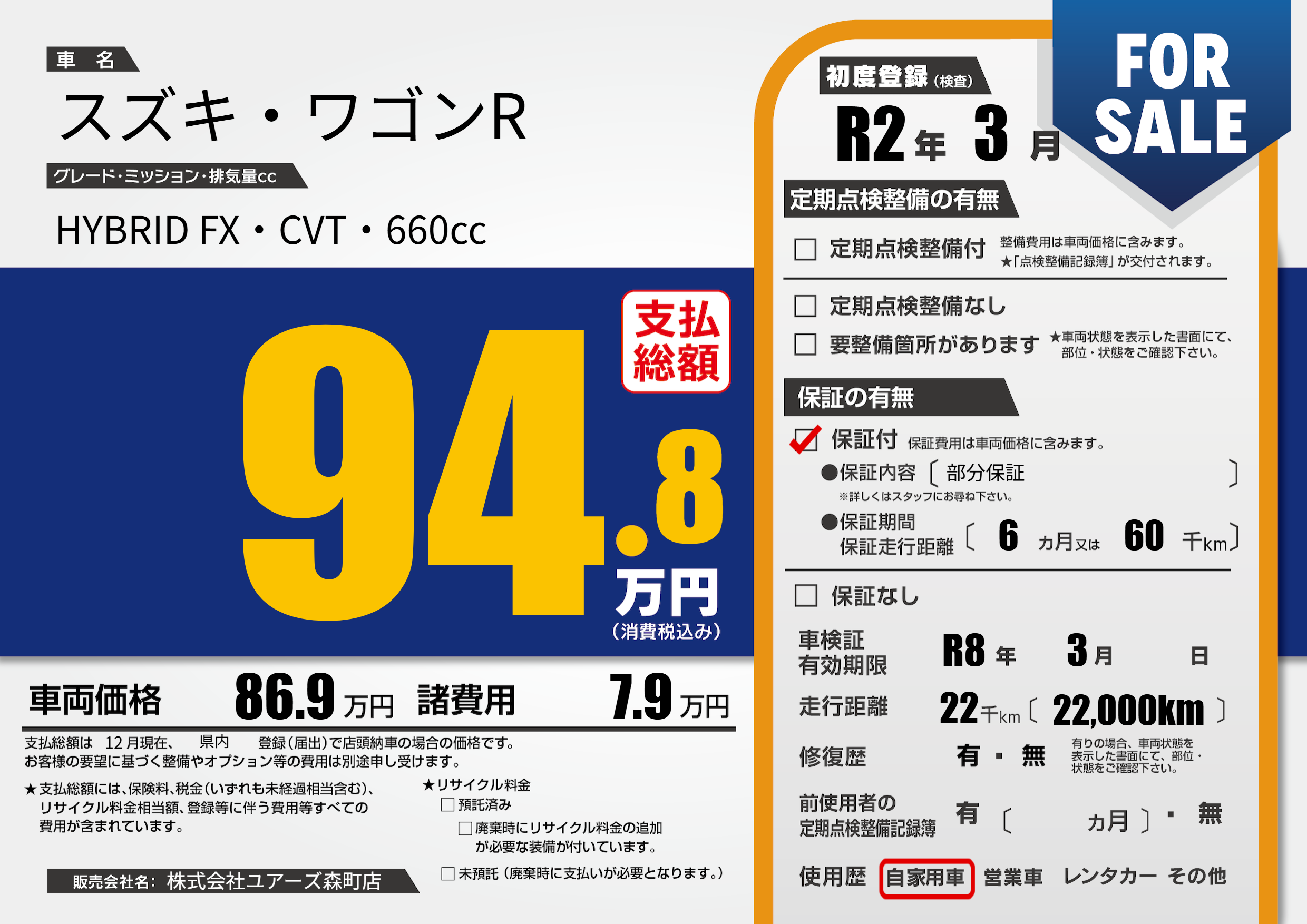 株式会社ユアーズ森町店の展示車