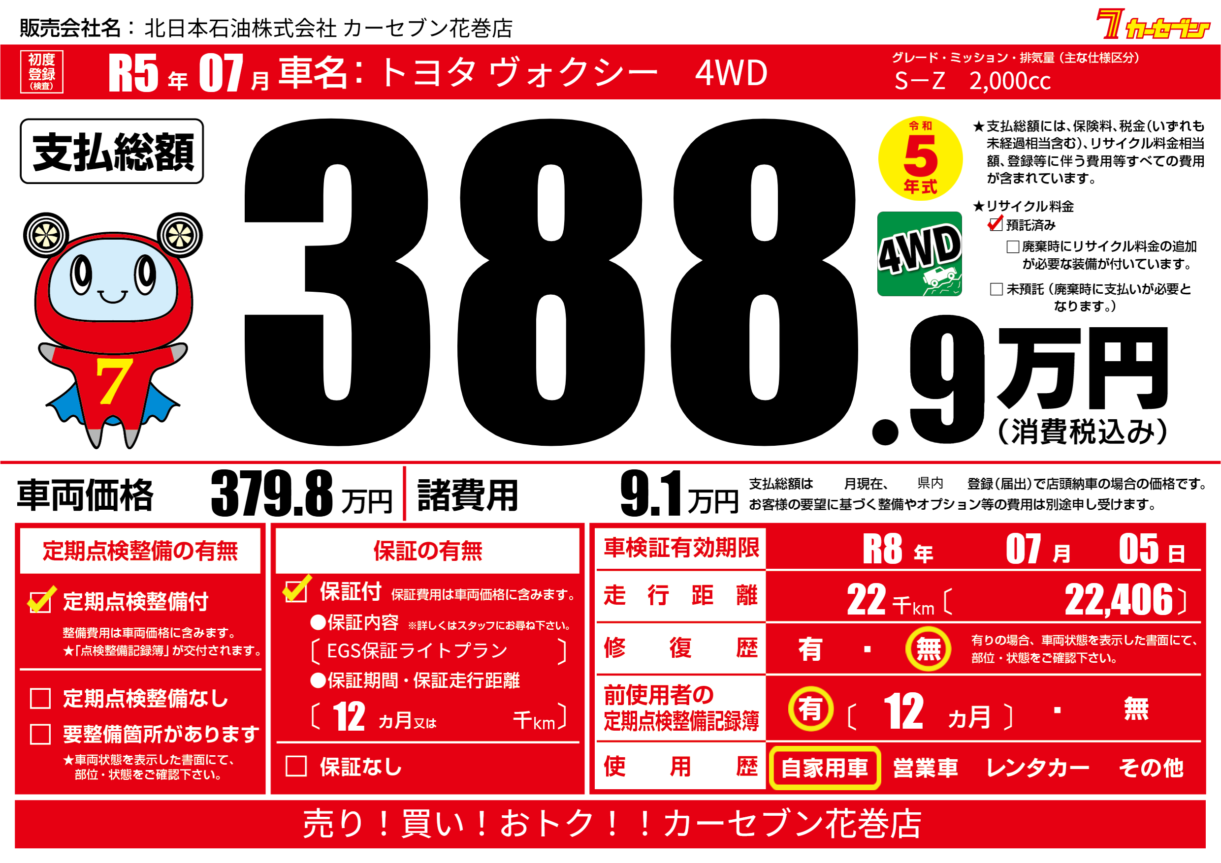 | 車検制限 | R8年 07月 05日 | ||