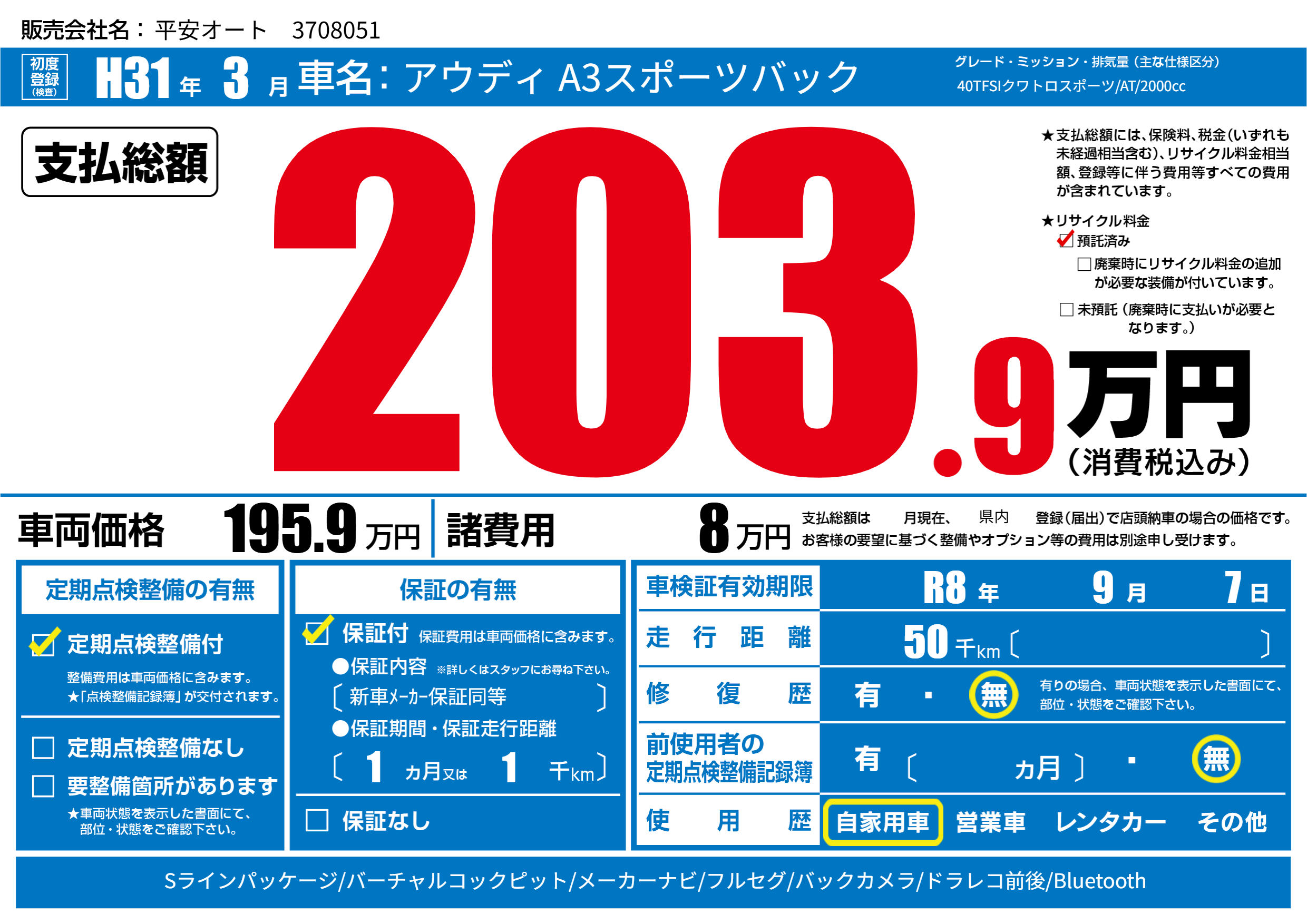 | 車検制限 | R8年 9月 7日 | ||