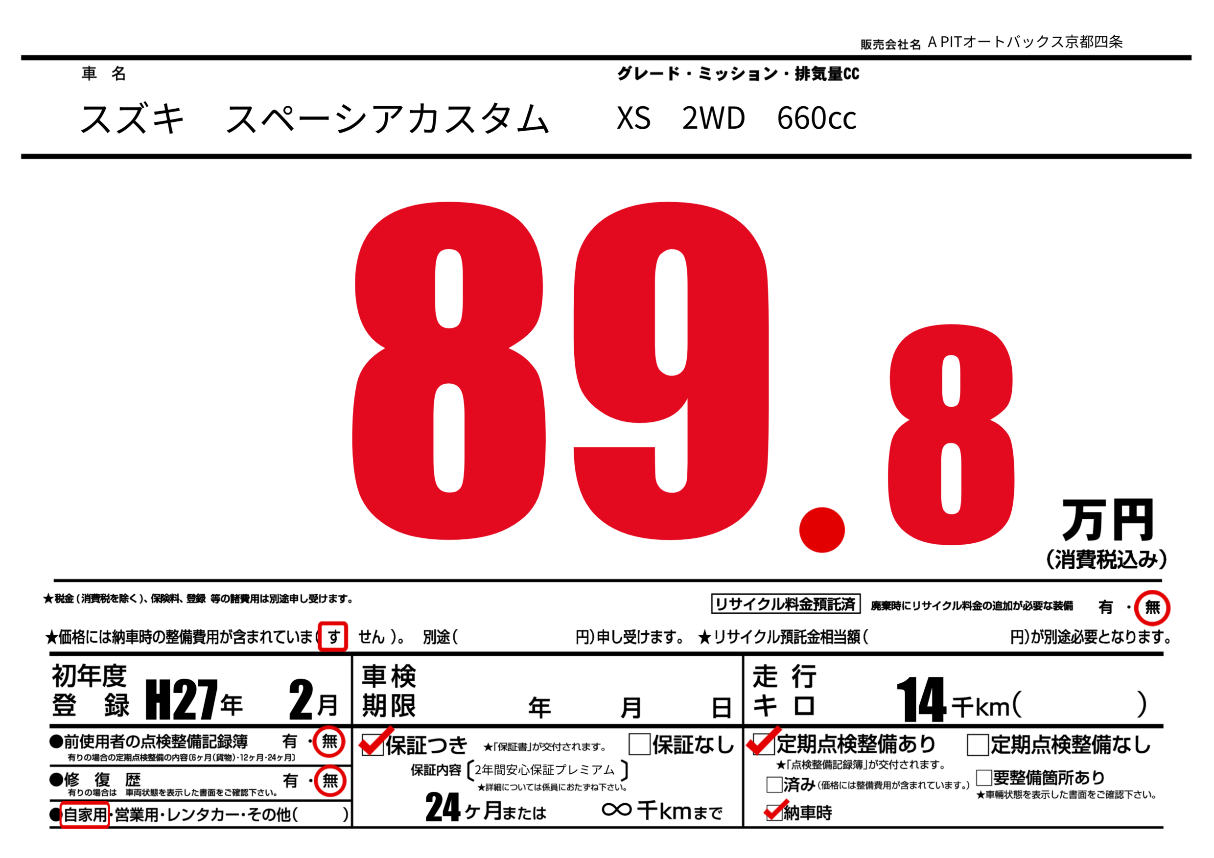 | 定期点検整備 | 定期点検整備あり 納車時あり | ||