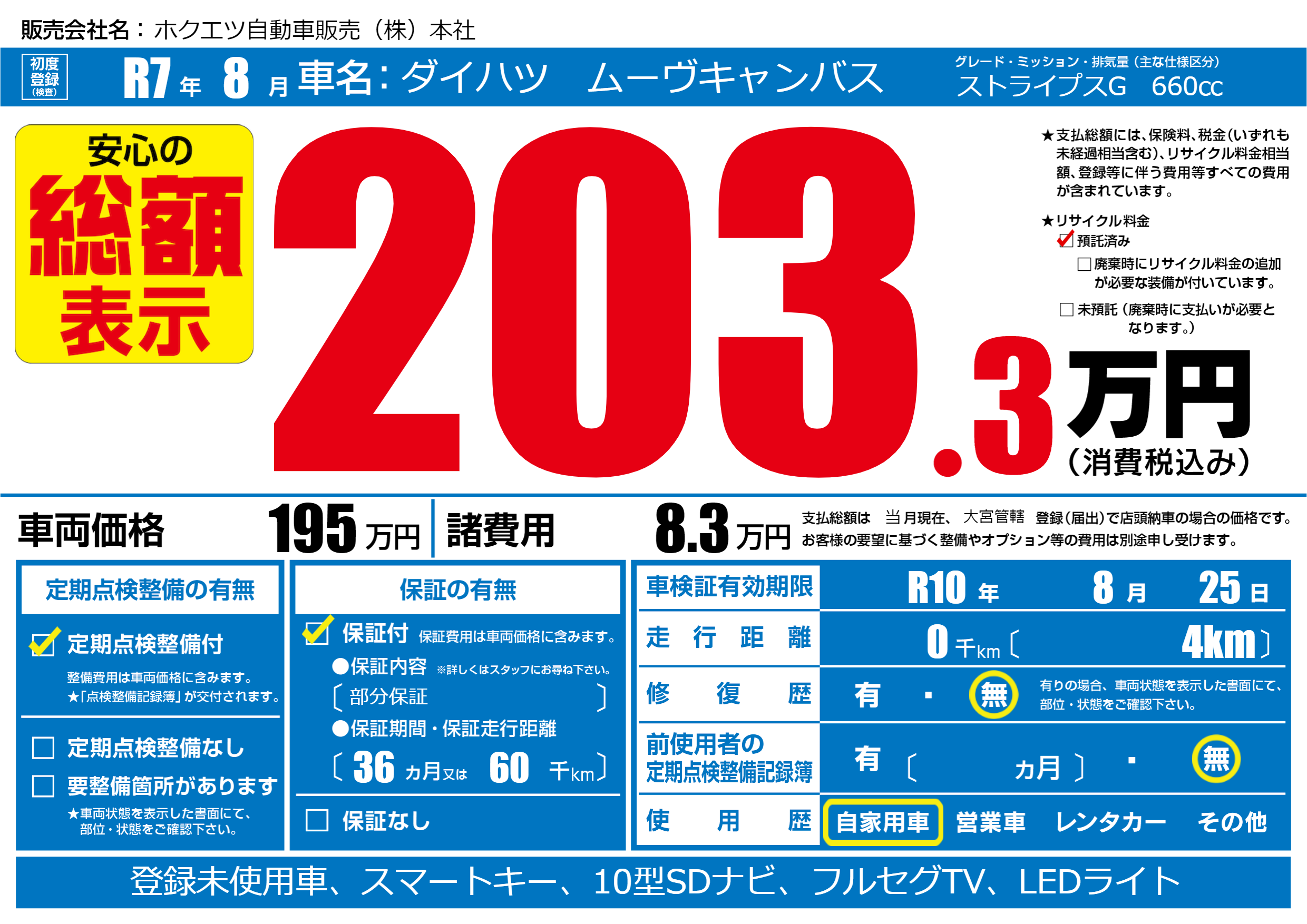 なし | 車検制限 | R10年8月25月 |